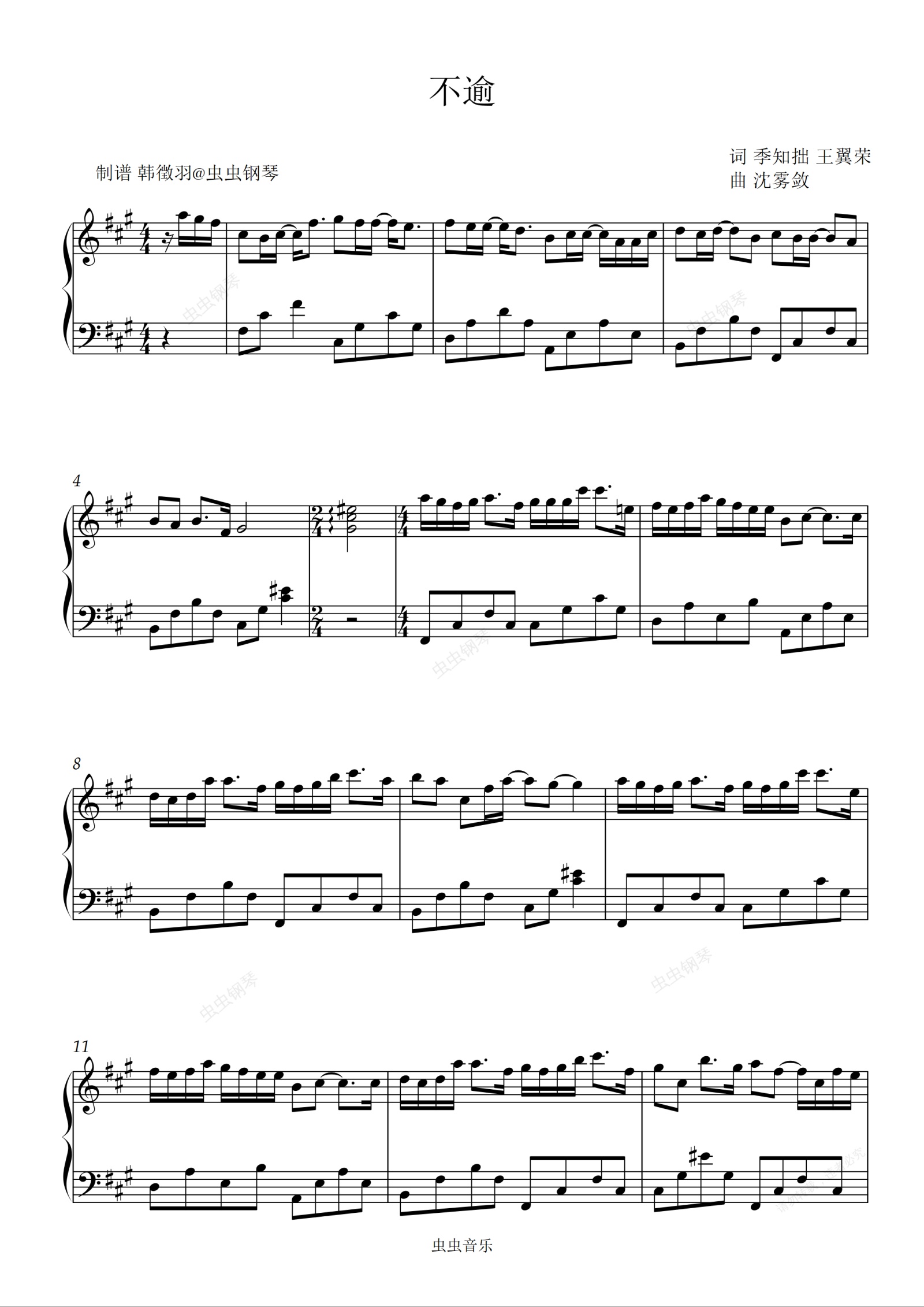 钢琴谱:不逾《长月烬明》插曲 原调好听易弹版