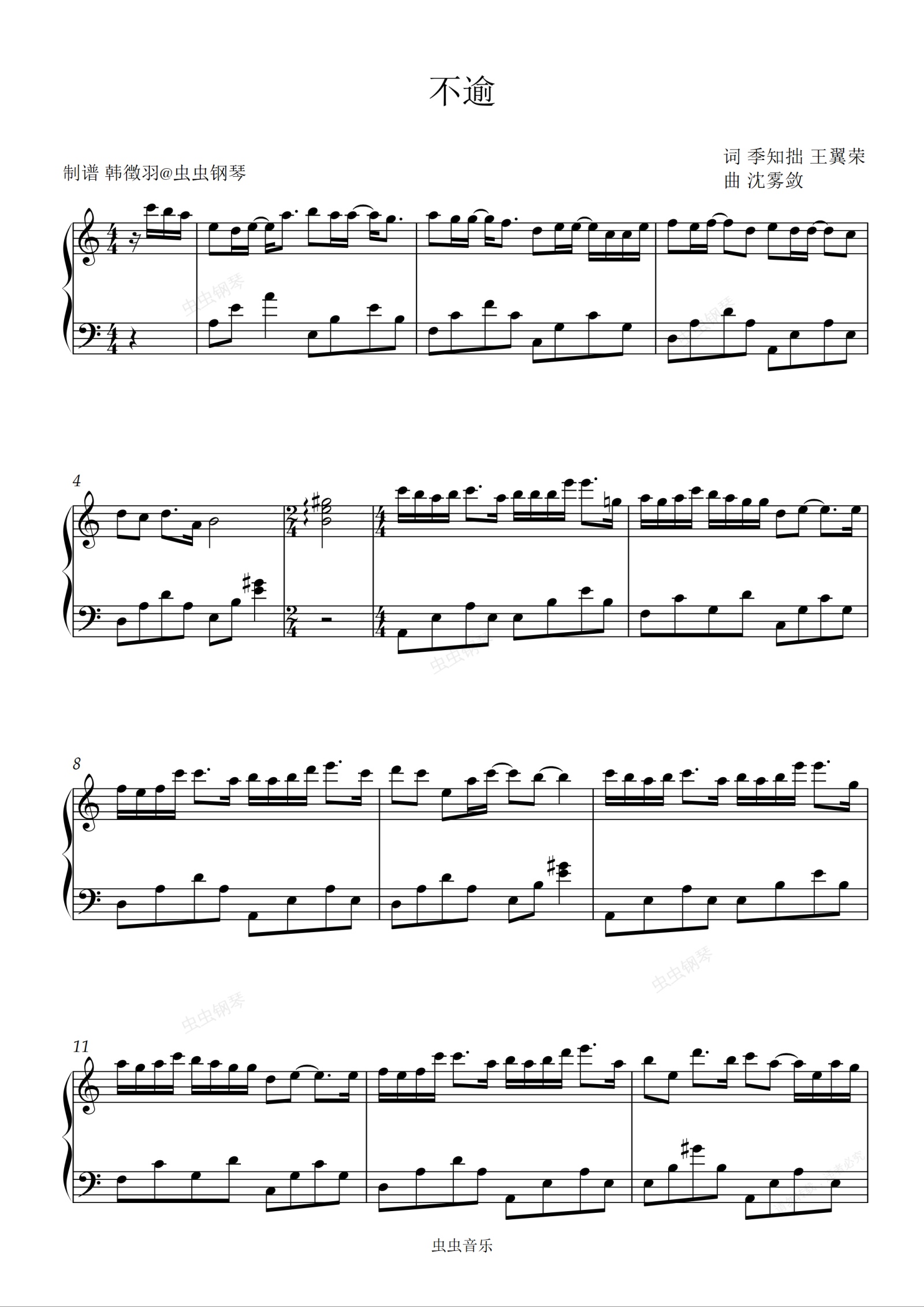 钢琴谱:不逾《长月烬明》插曲C调简单易弹