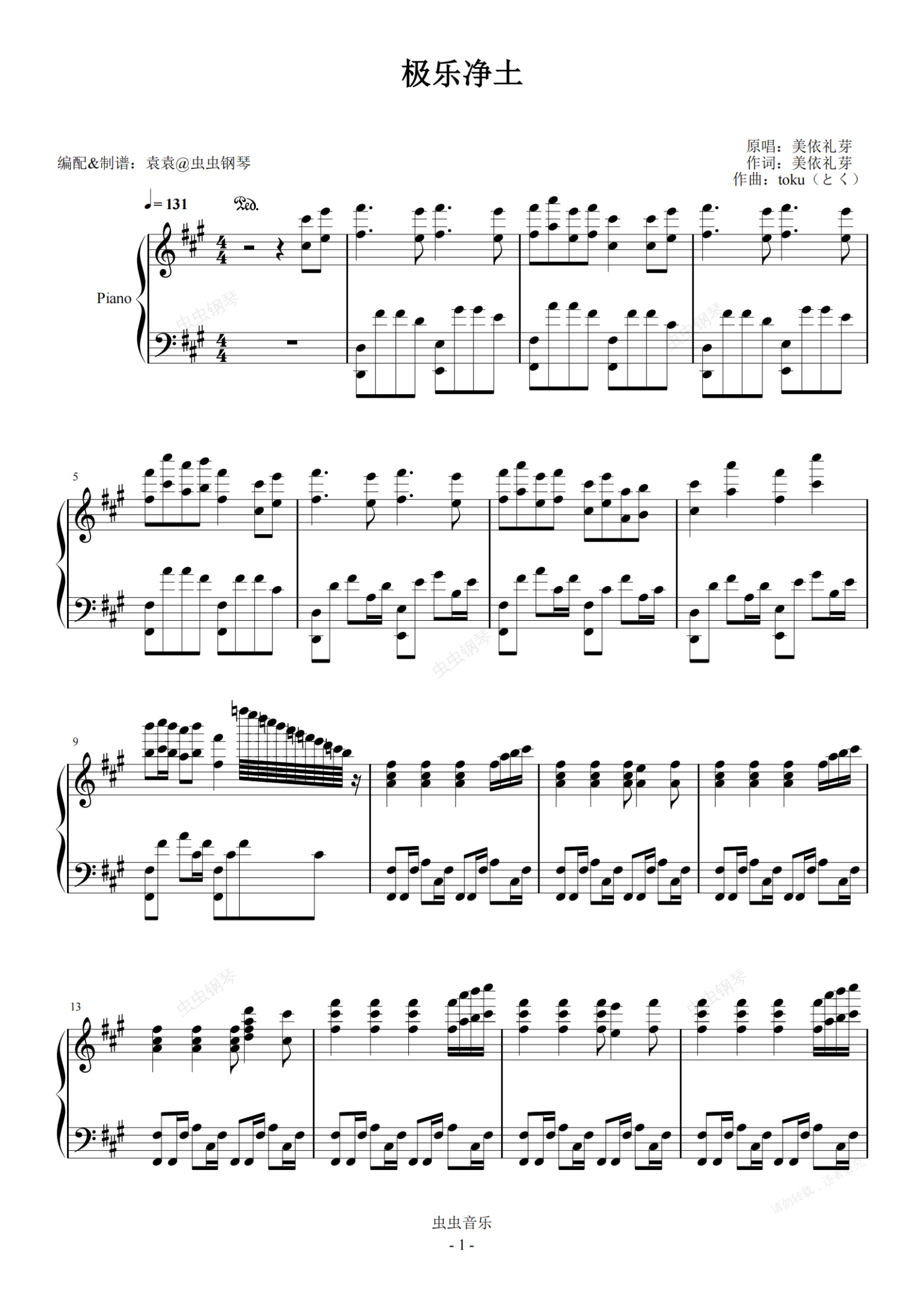 钢琴谱:极乐净土 美依礼芽 原调编配版