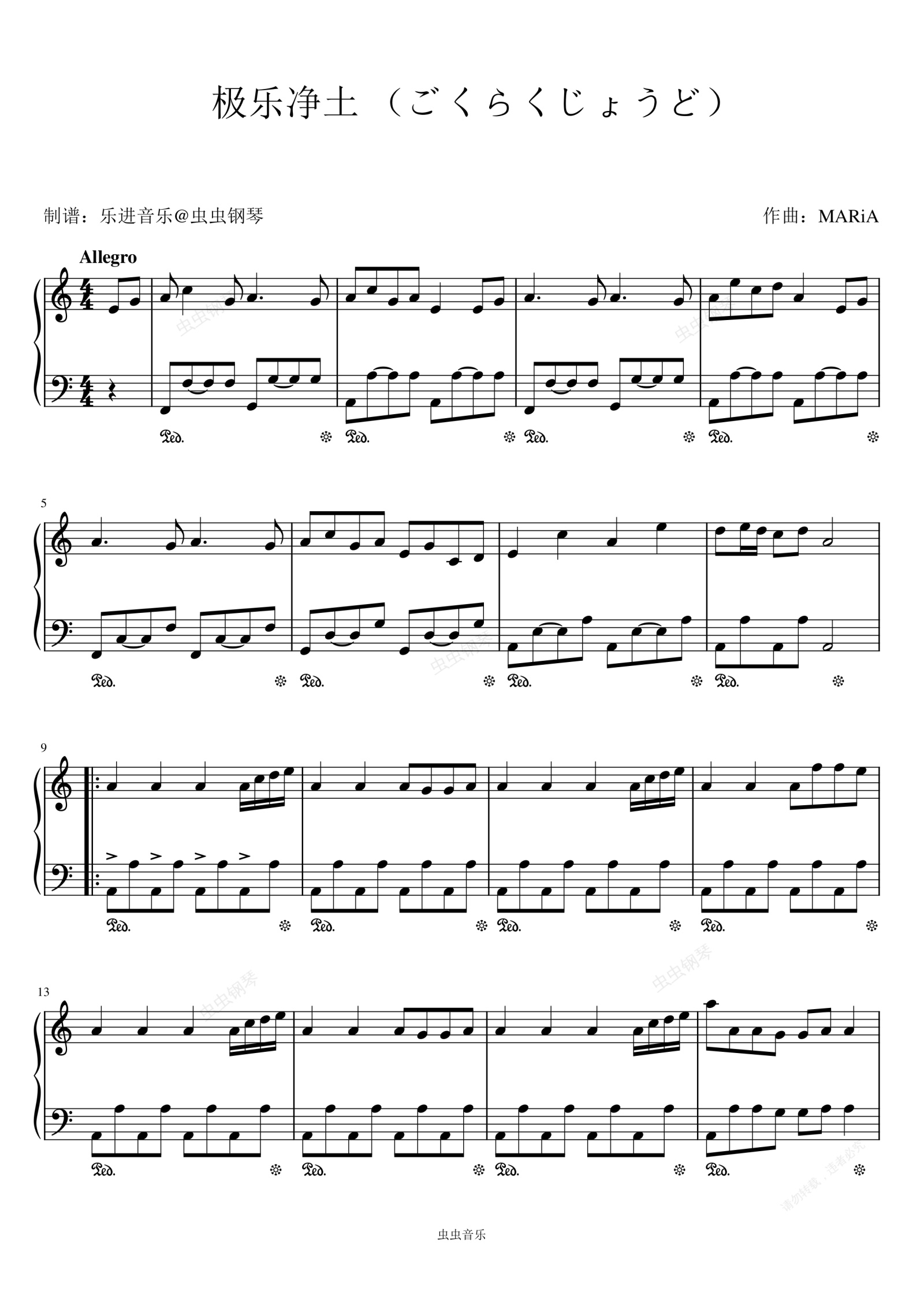 钢琴谱:《极乐净土》C调初级版