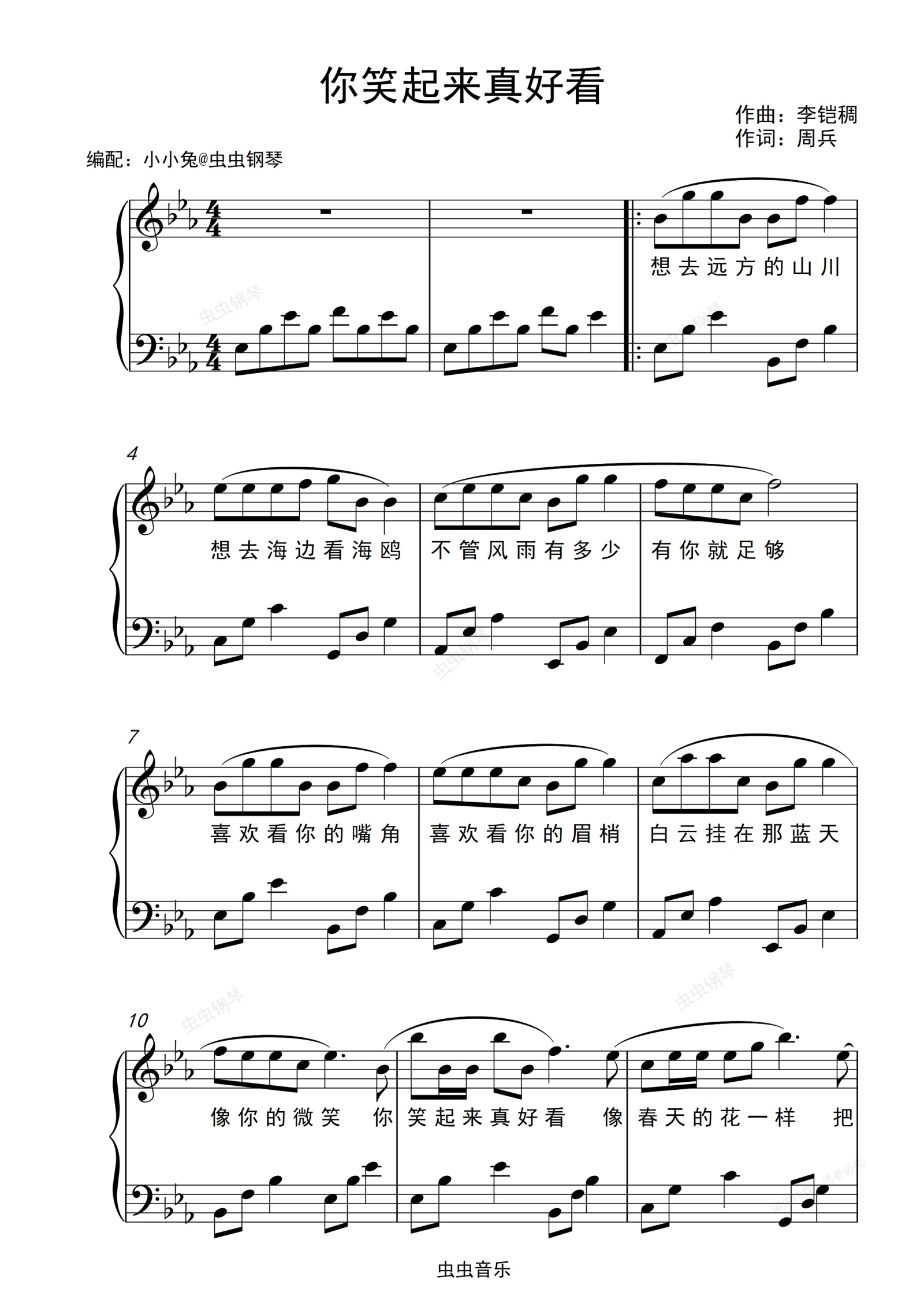 钢琴谱:你笑起来真好看 原调