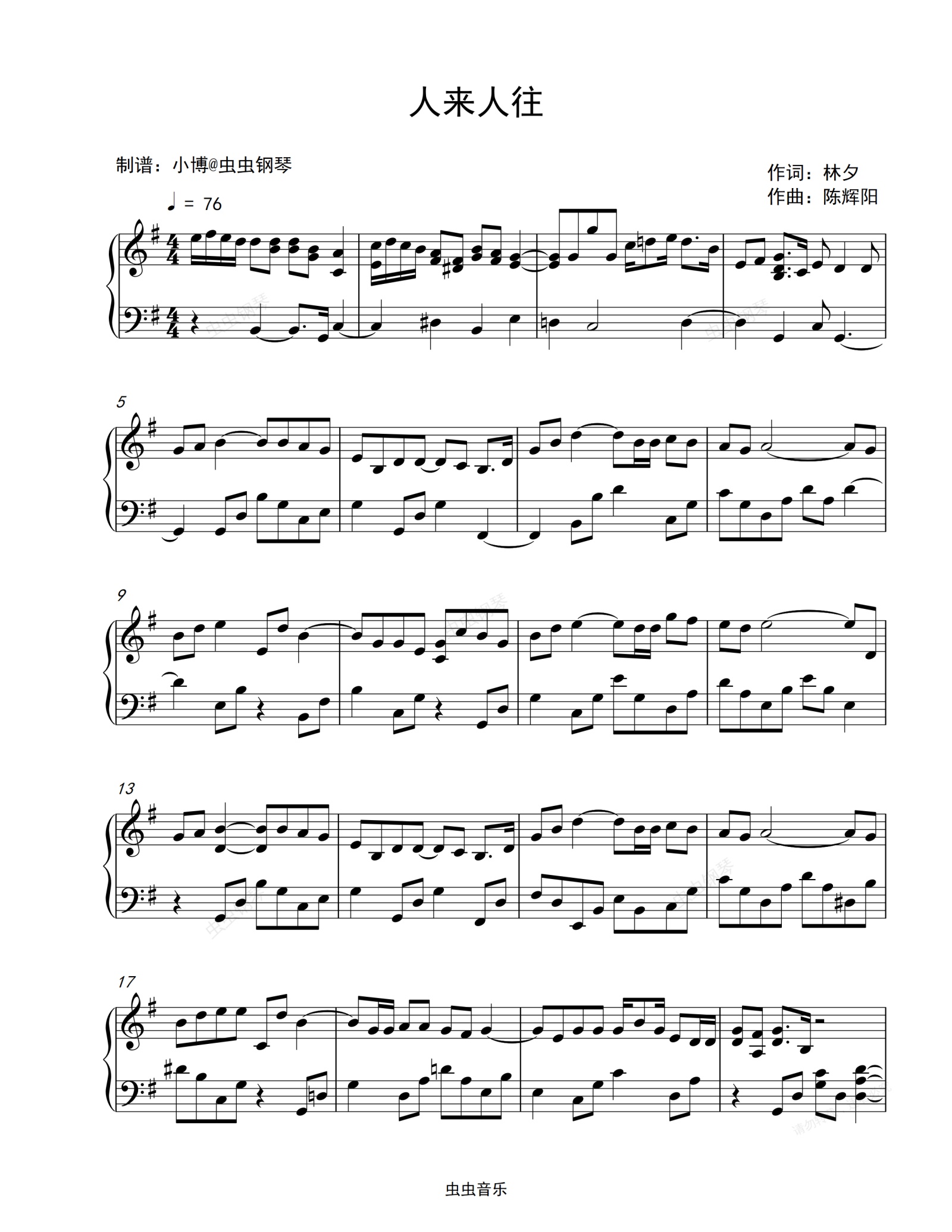 钢琴谱:人来人往-陈奕迅