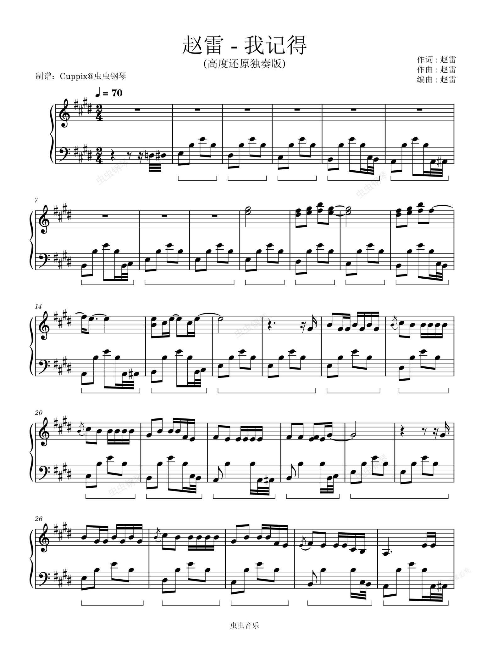 钢琴谱:赵雷《我记得》高度还原独奏版