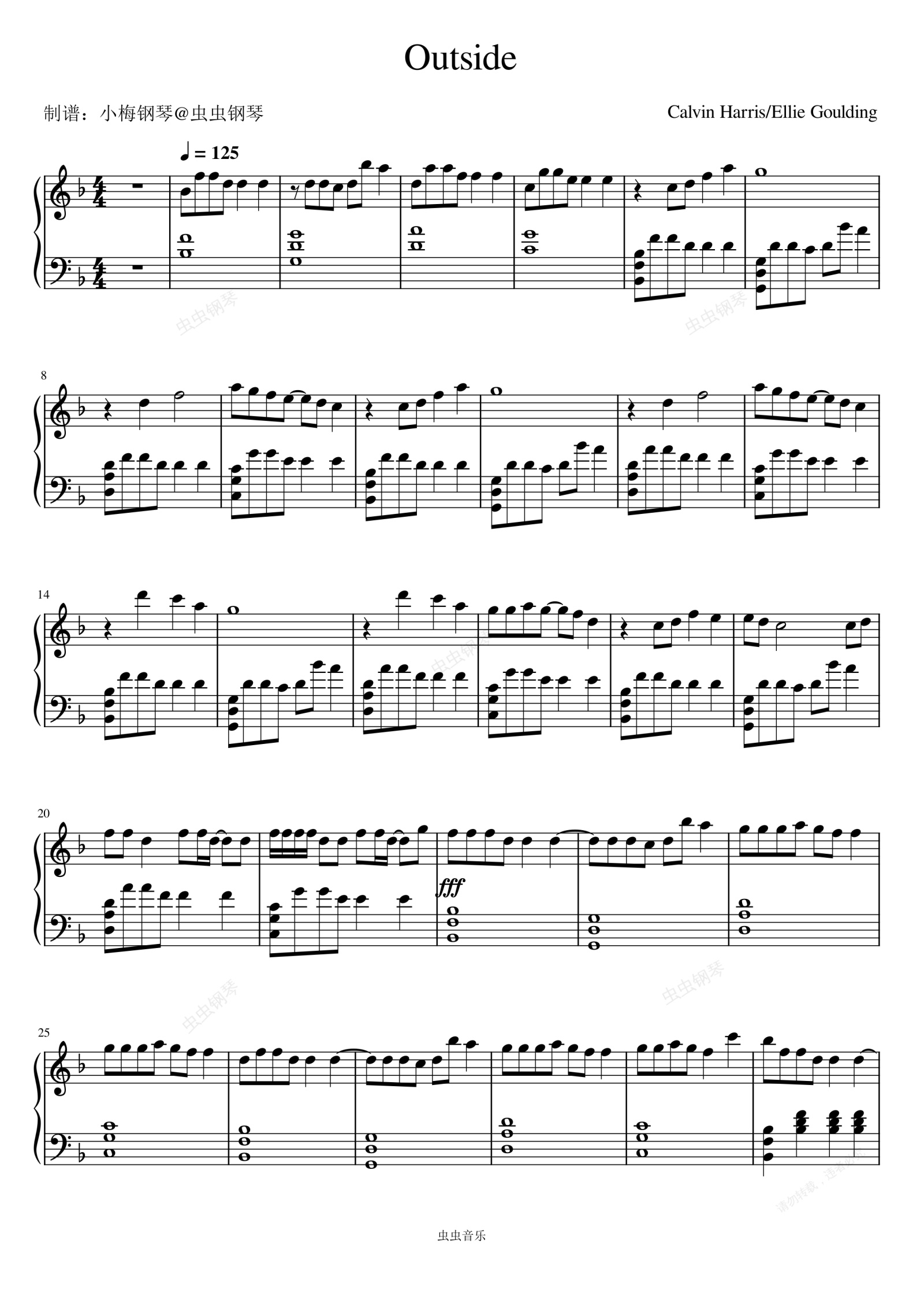 钢琴谱:Outside - Calvin Harris (加尔文·哈里斯)/Ellie Goulding