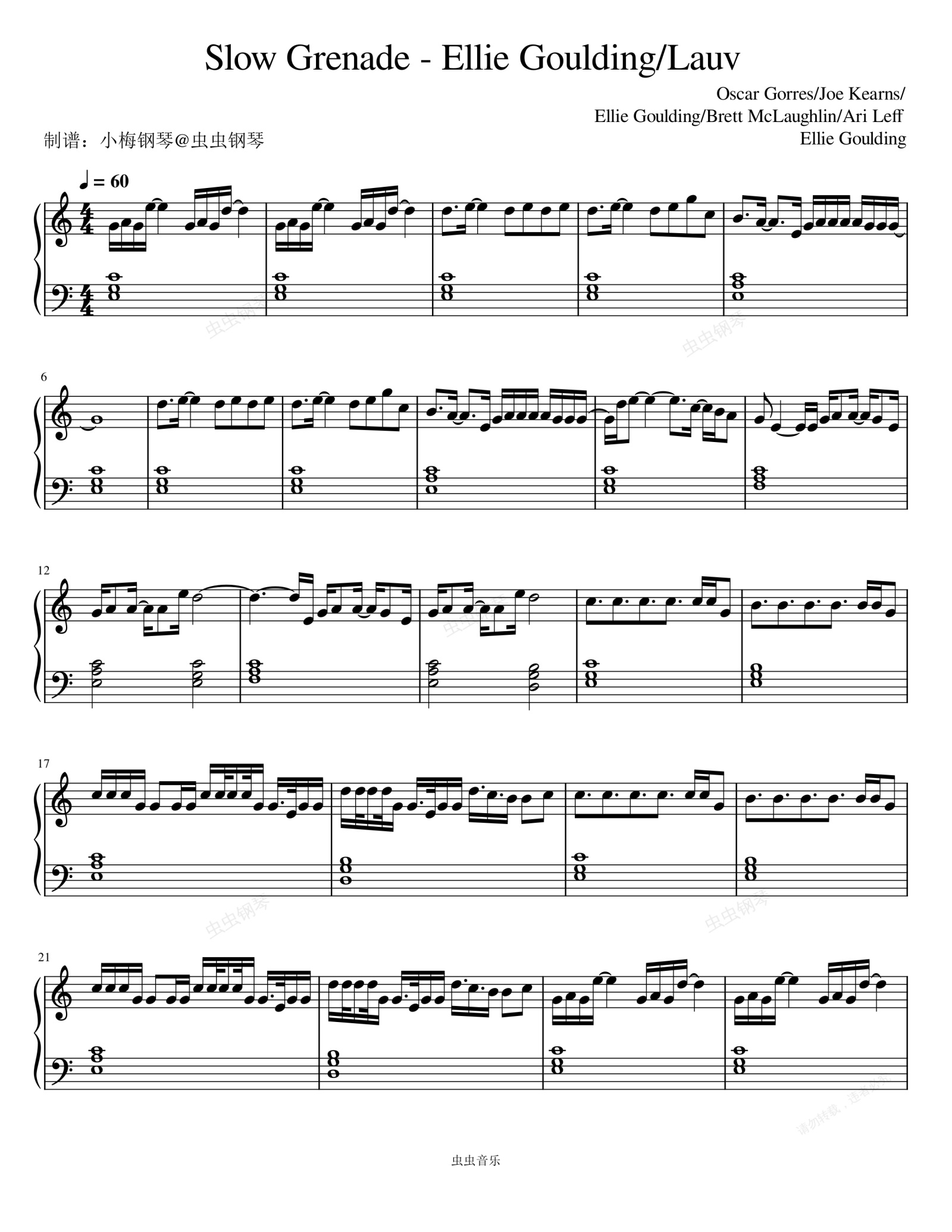 钢琴谱:Slow Grenade - Ellie Goulding/Lauv