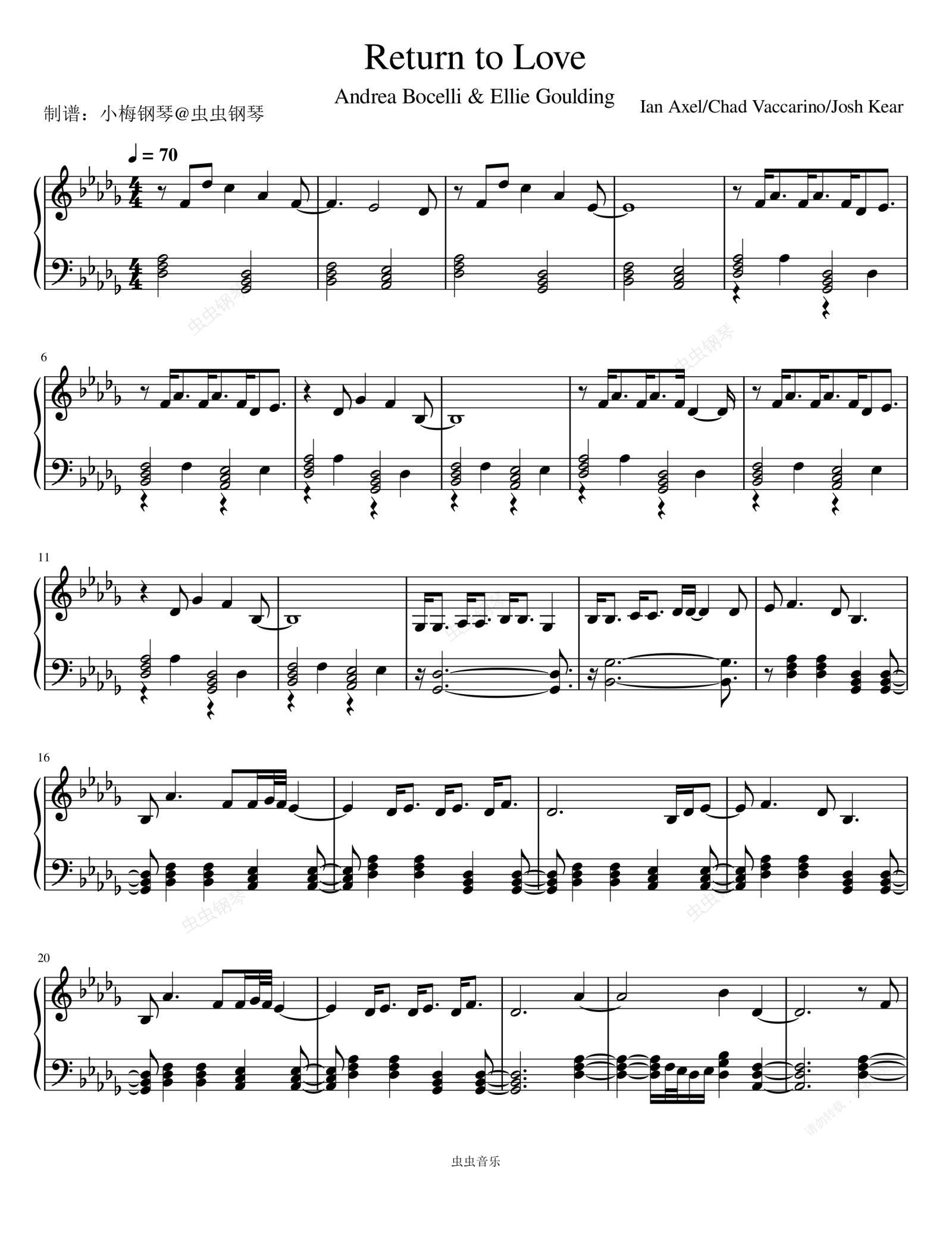 钢琴谱:Return To Love - Andrea Bocelli/Ellie Goulding
