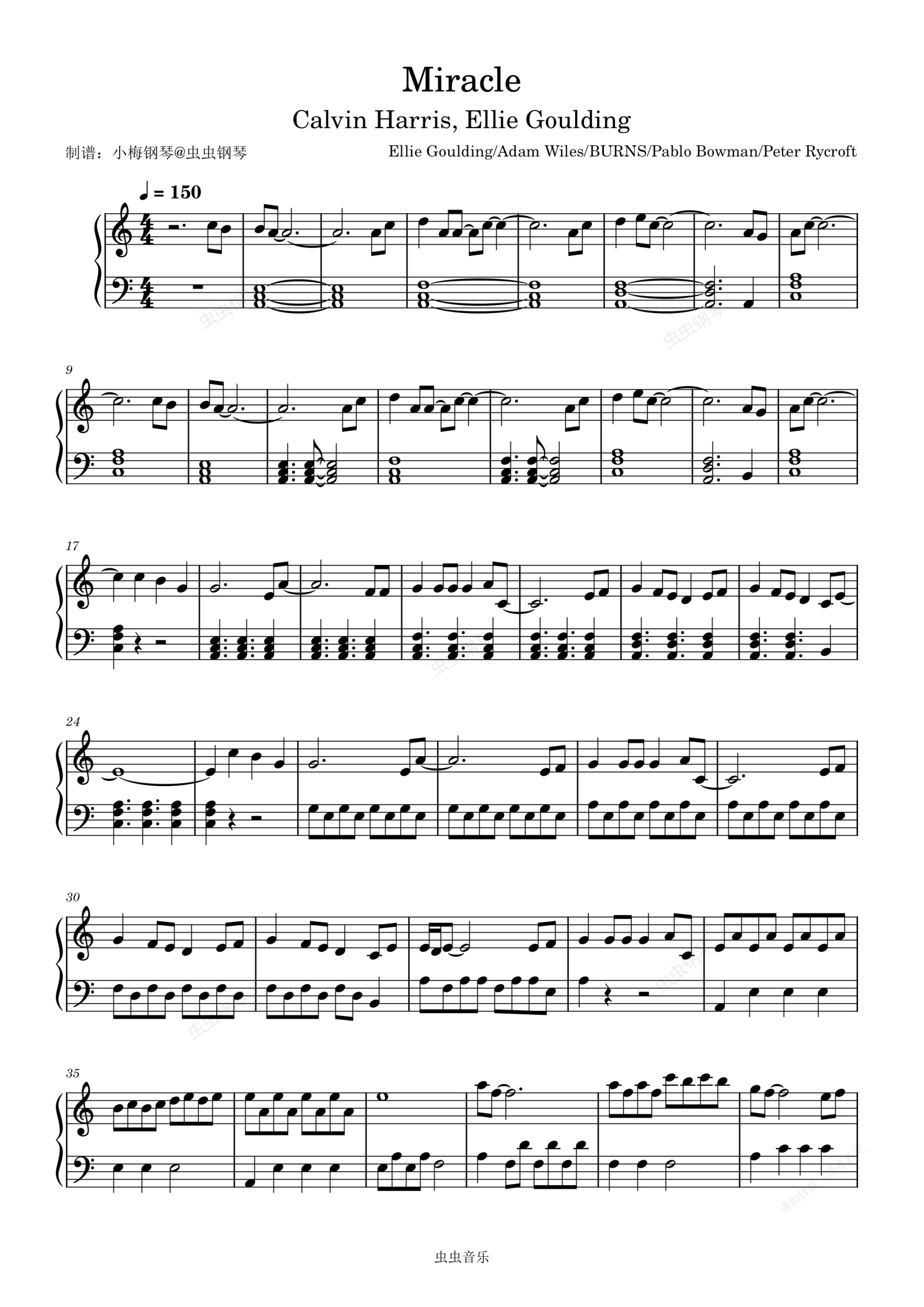 钢琴谱:Miracle - Calvin Harris (卡尔文·哈里斯)/Ellie Goulding (埃利·古尔丁)