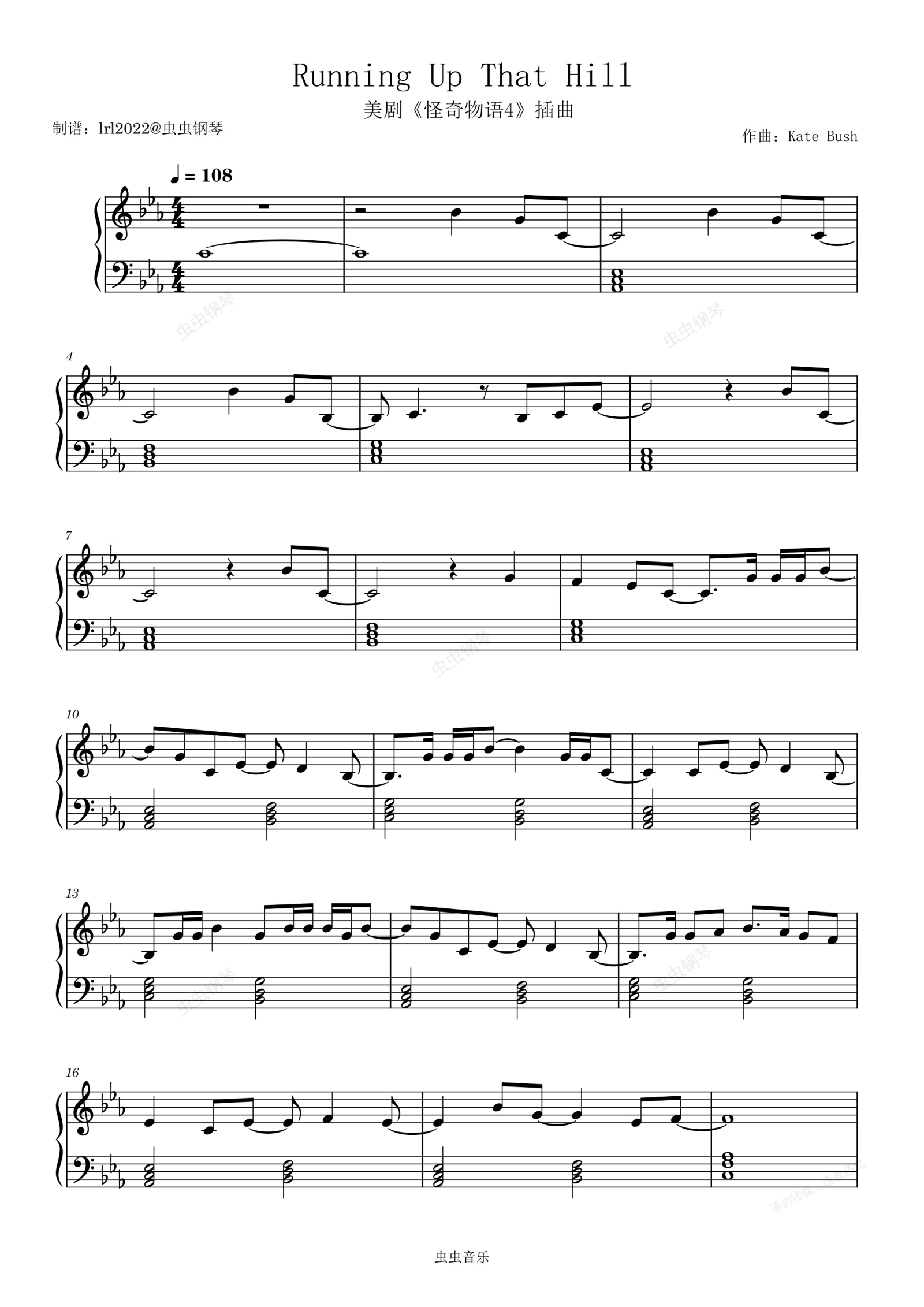 钢琴谱:美剧《怪奇物语4》插曲 - Running Up That Hill - 钢琴独奏