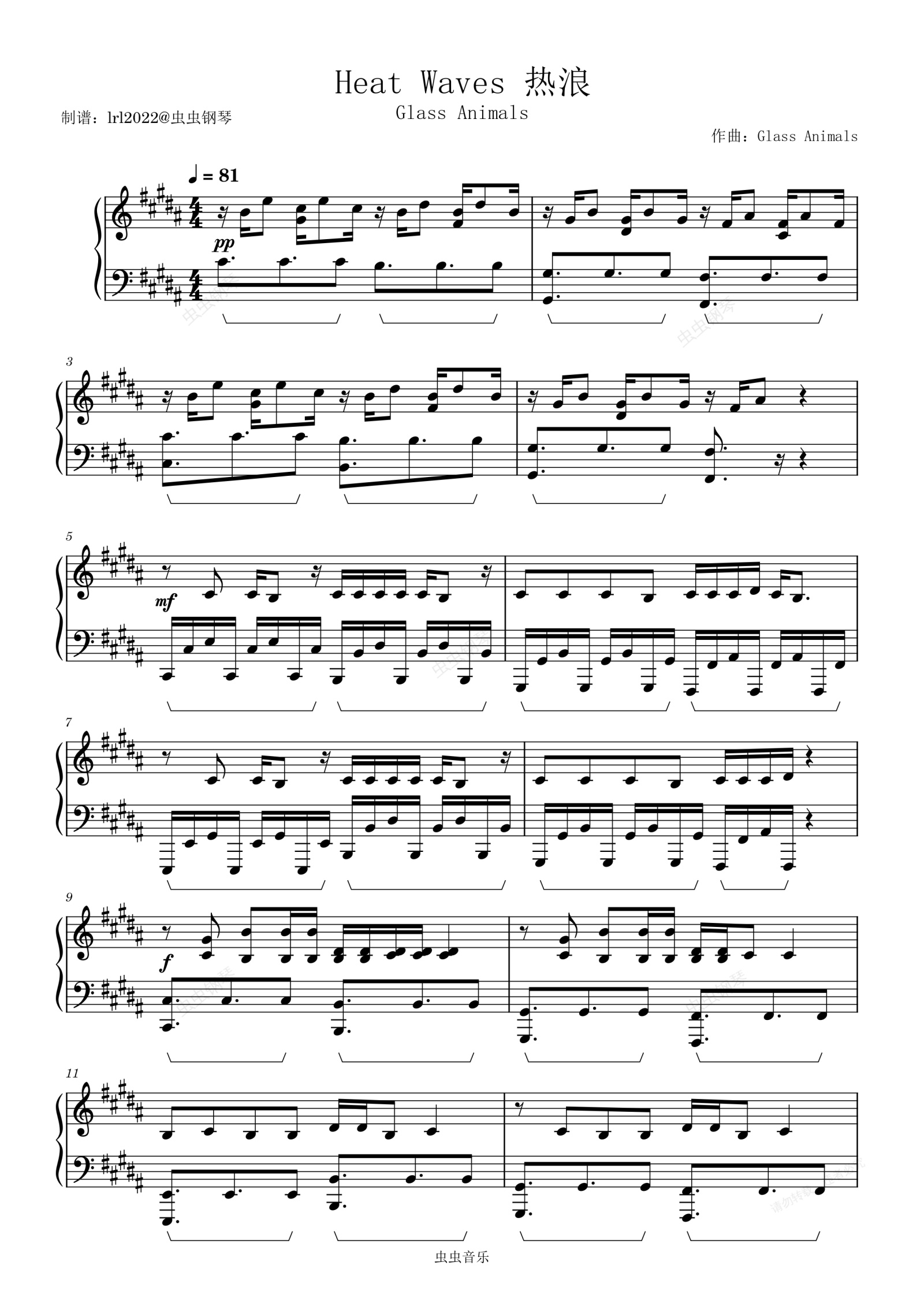 钢琴谱:Heat Waves - 热浪 - Glass Animals - 钢琴独奏
