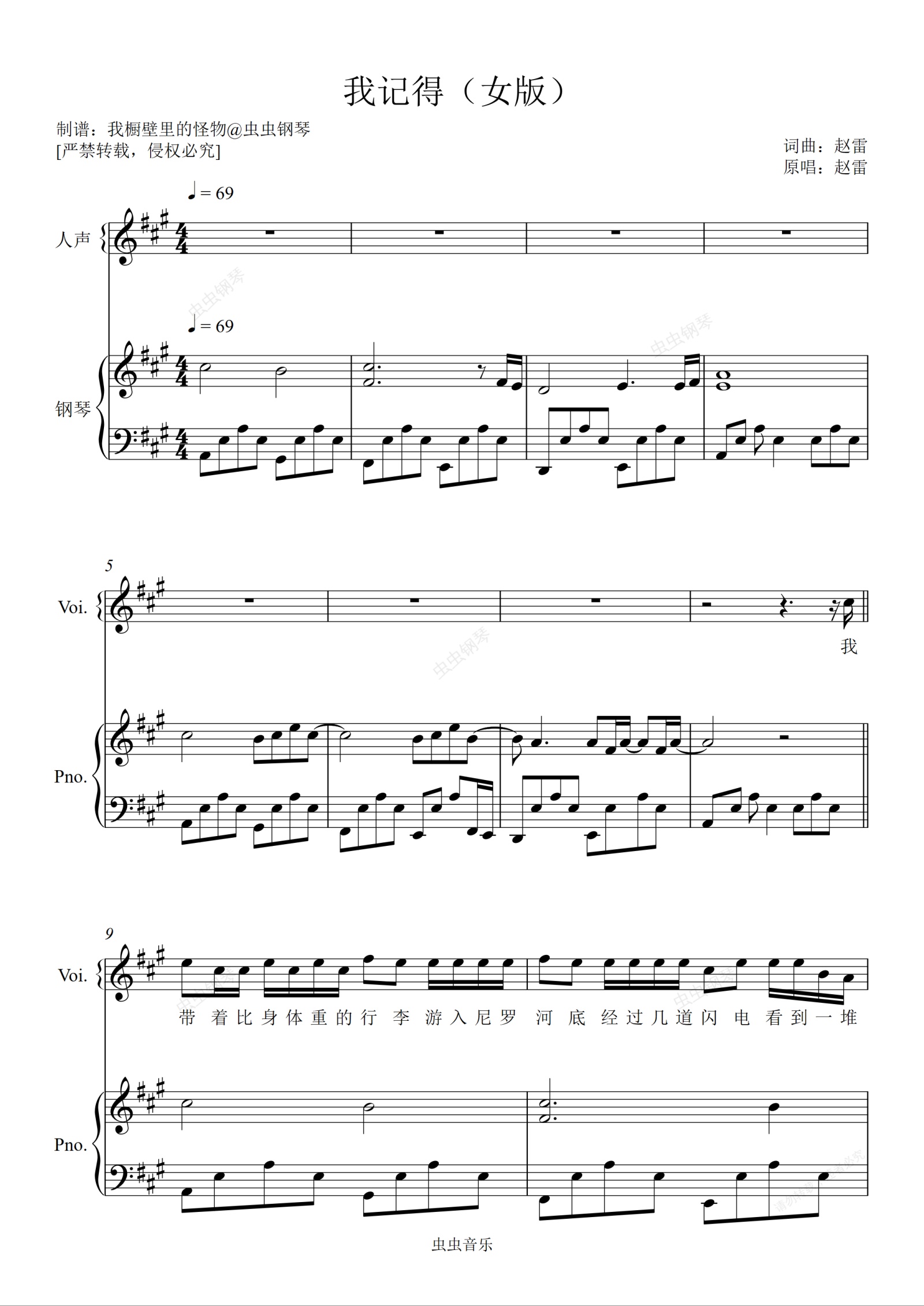钢琴谱:【女版弹唱】我记得 赵雷「怪物」