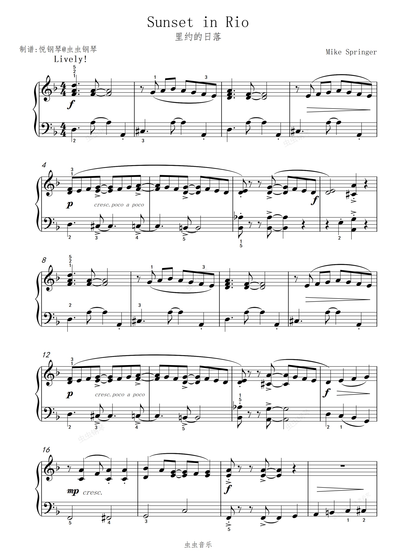钢琴谱:里约的日落//Sunset in Rio【爵士-激情】