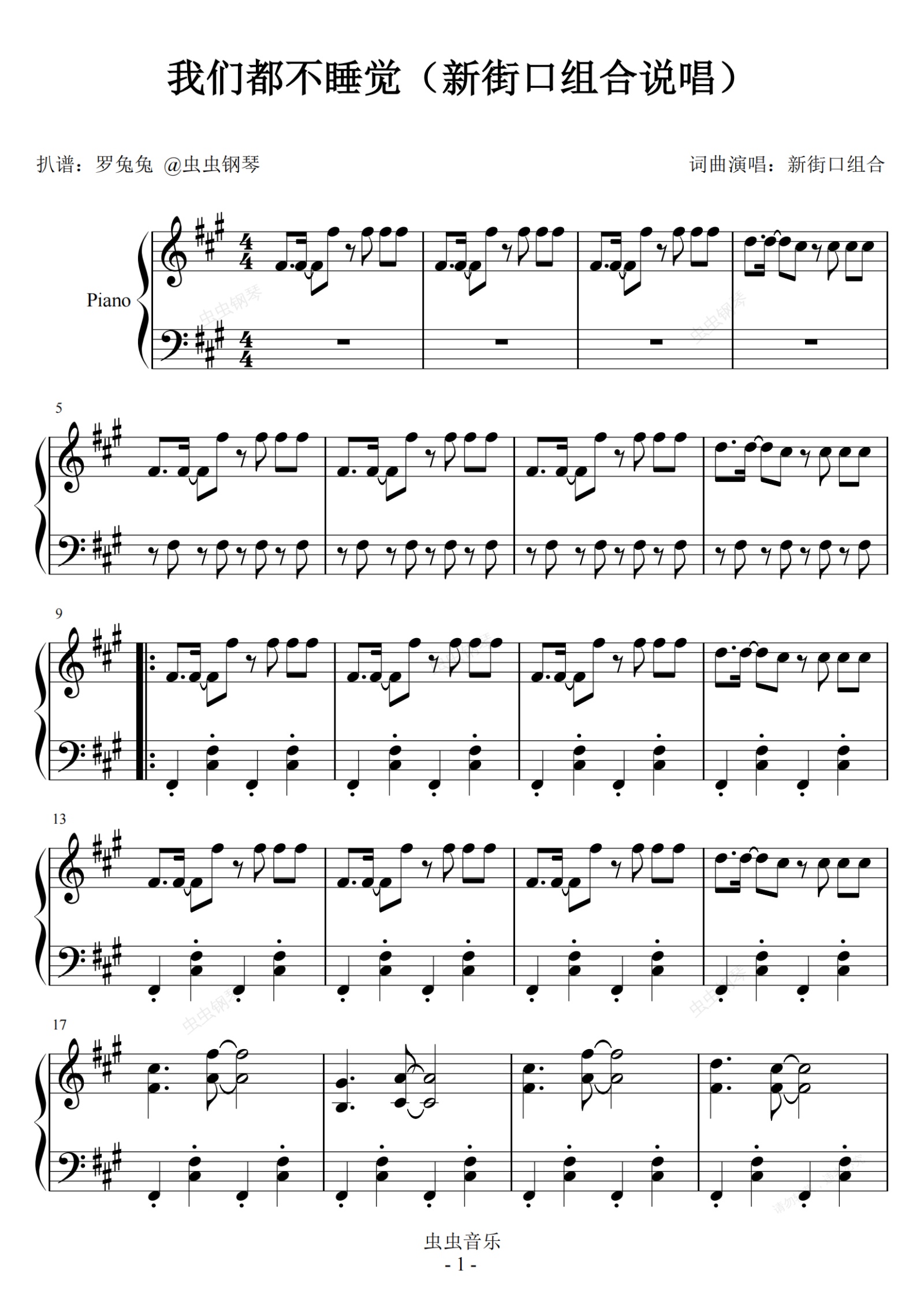 钢琴谱:我们都不睡觉(新街口组合说唱)