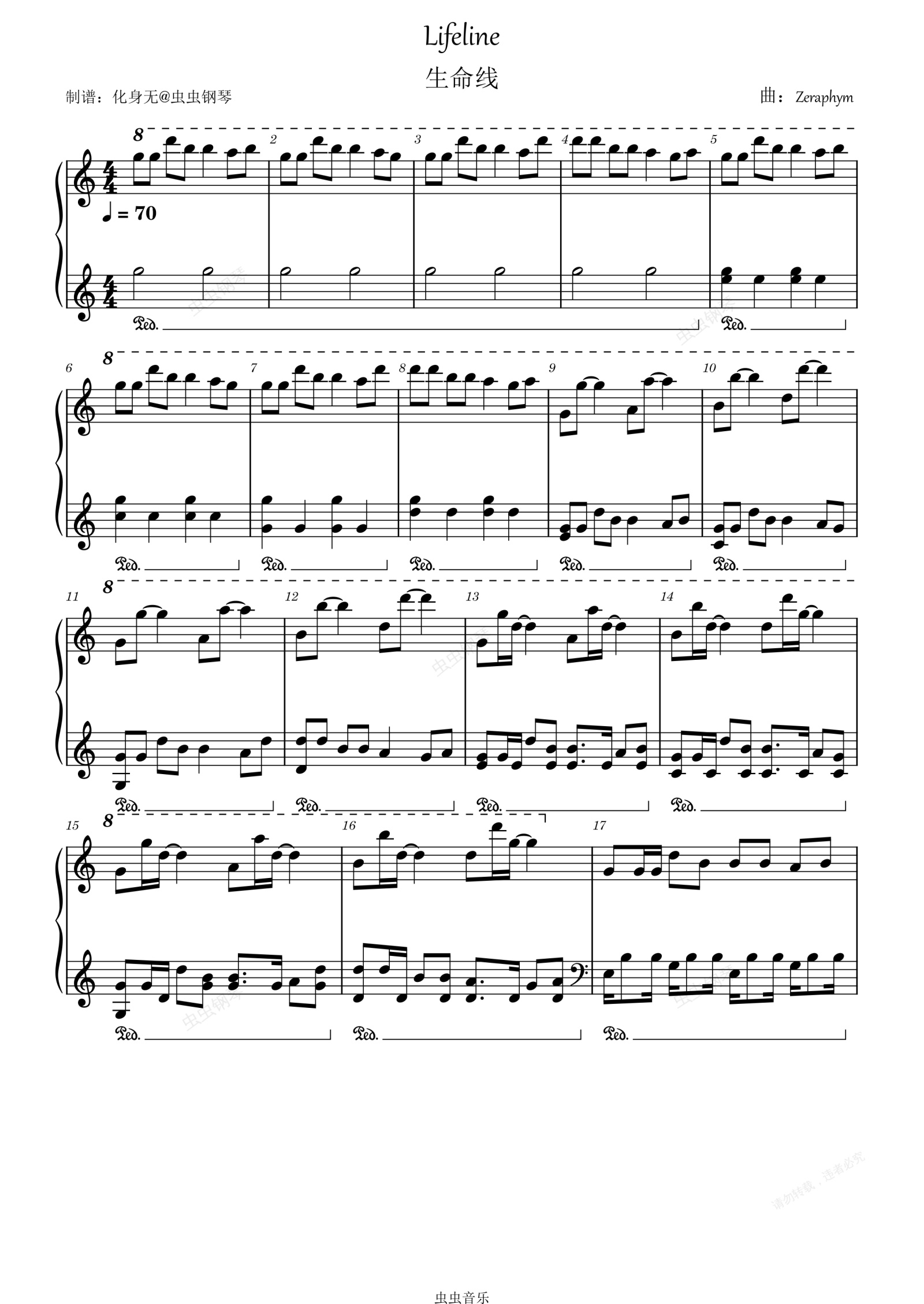 钢琴谱:Lifeline 化身无编配 G调独奏版