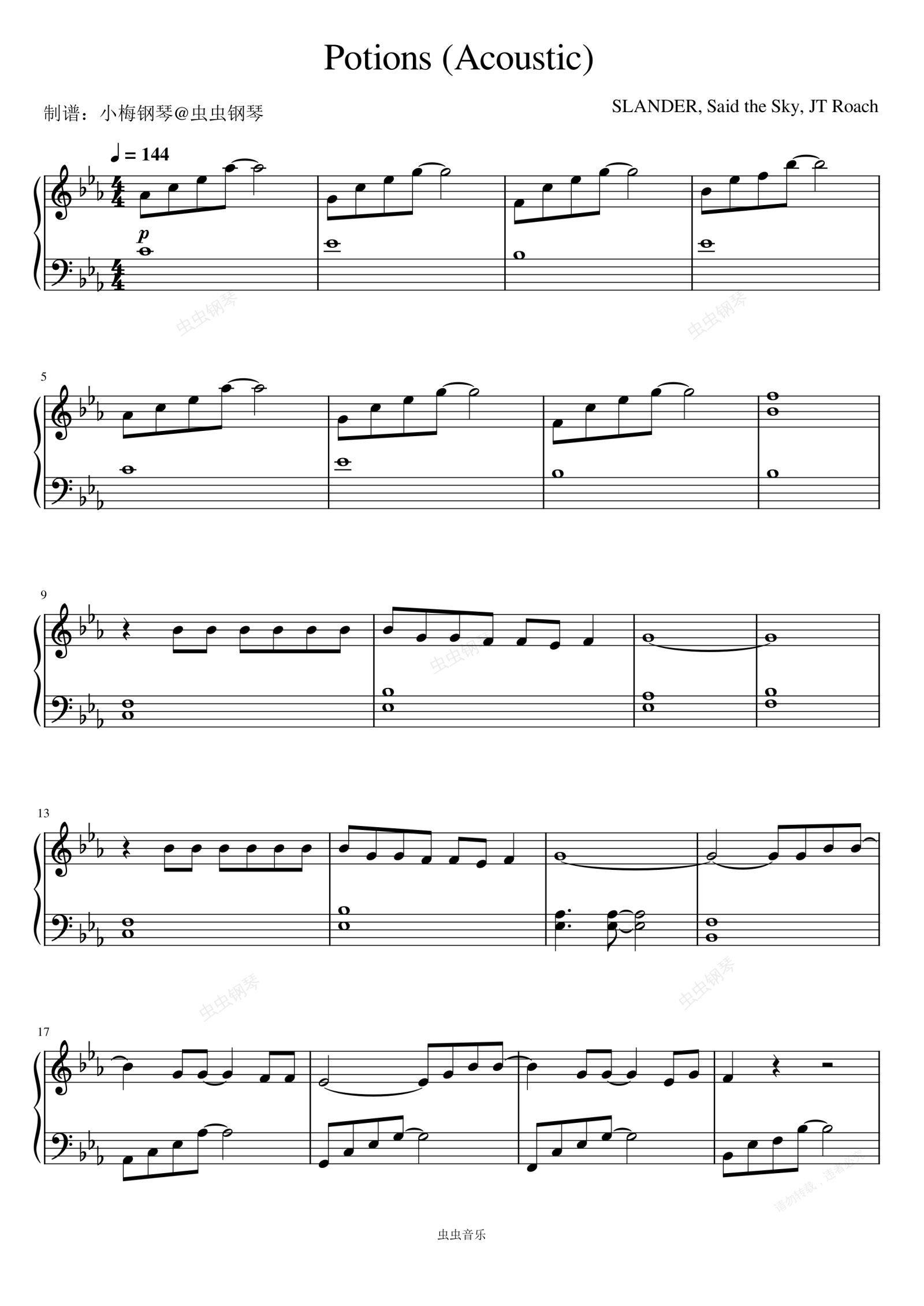 钢琴谱:Potions - SLANDER/Said The Sky (特雷佛·克利史坦森)/JT Roach