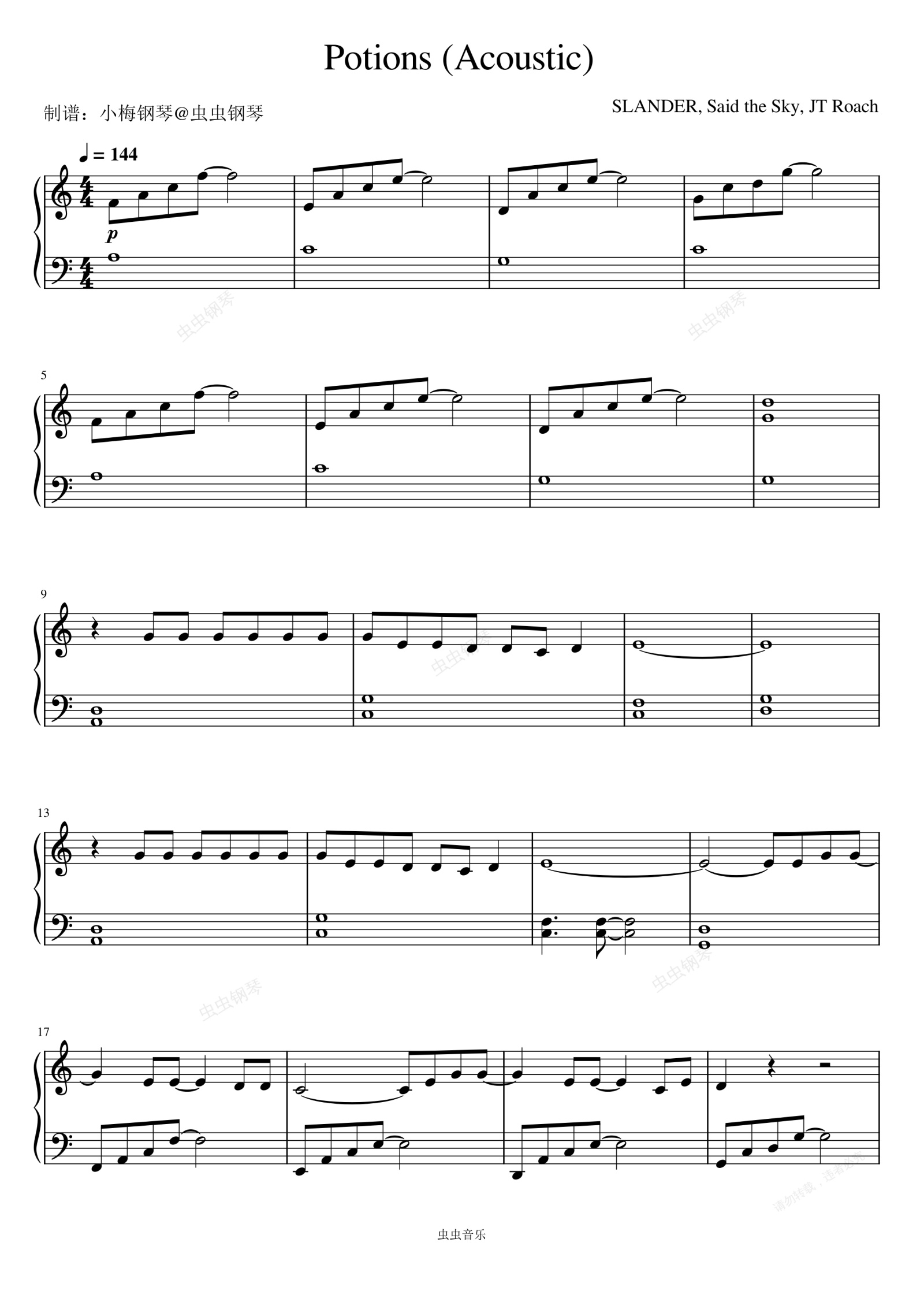 钢琴谱:Potions - SLANDER/Said The Sky (特雷佛·克利史坦森)/JT Roach