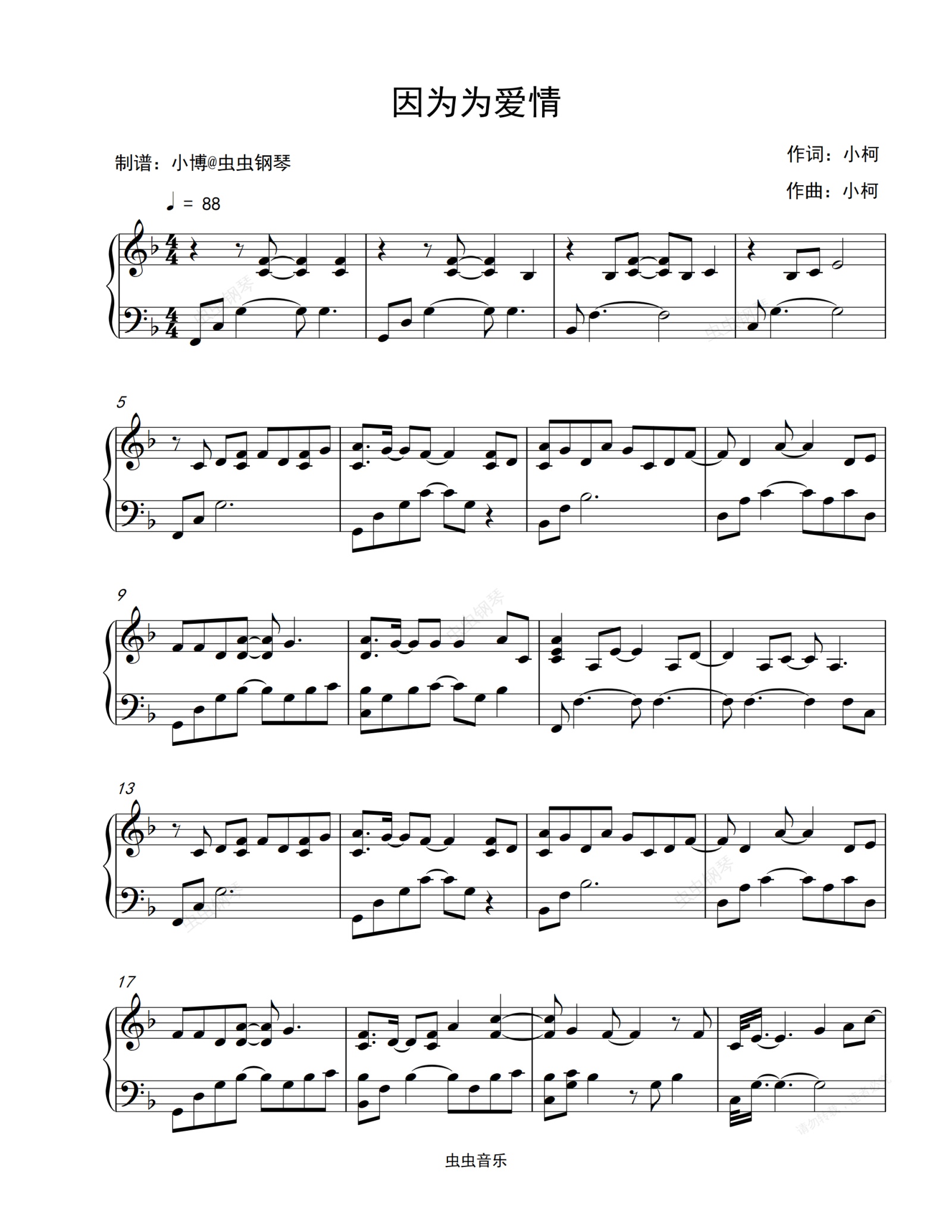 钢琴谱:因为爱情-王菲/陈奕迅