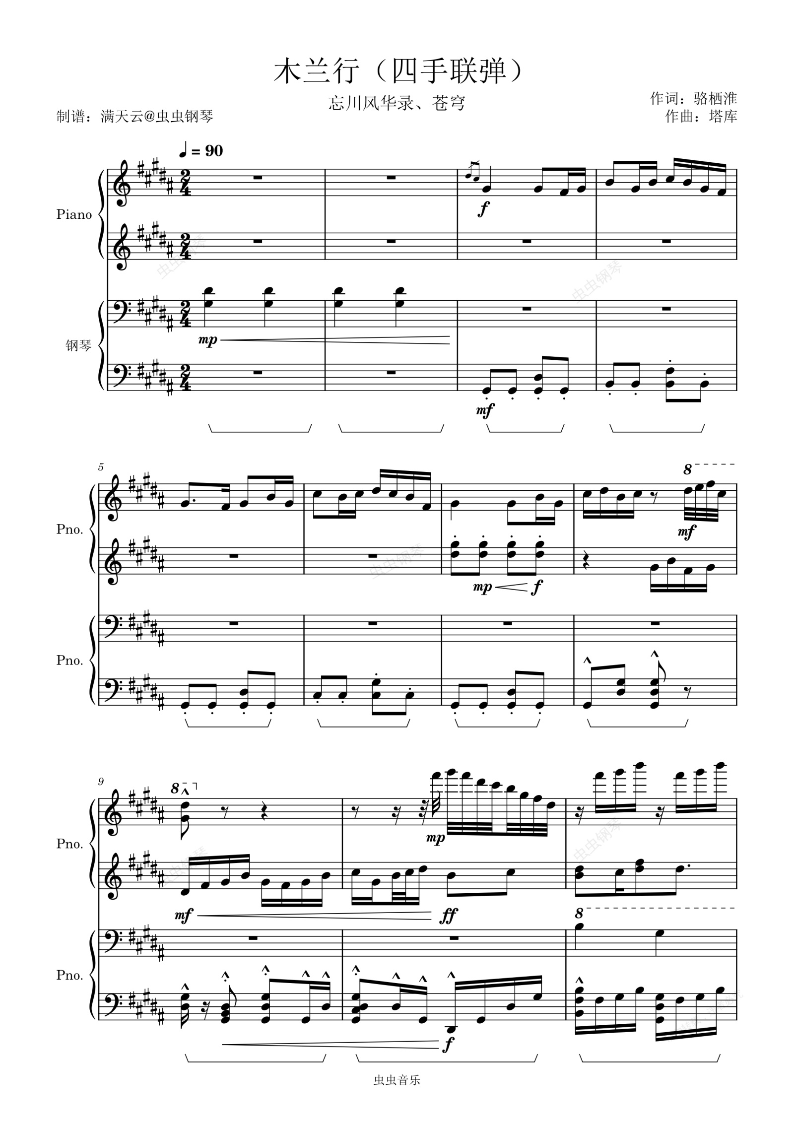 钢琴谱:木兰行(四手联弹——高燃还原)