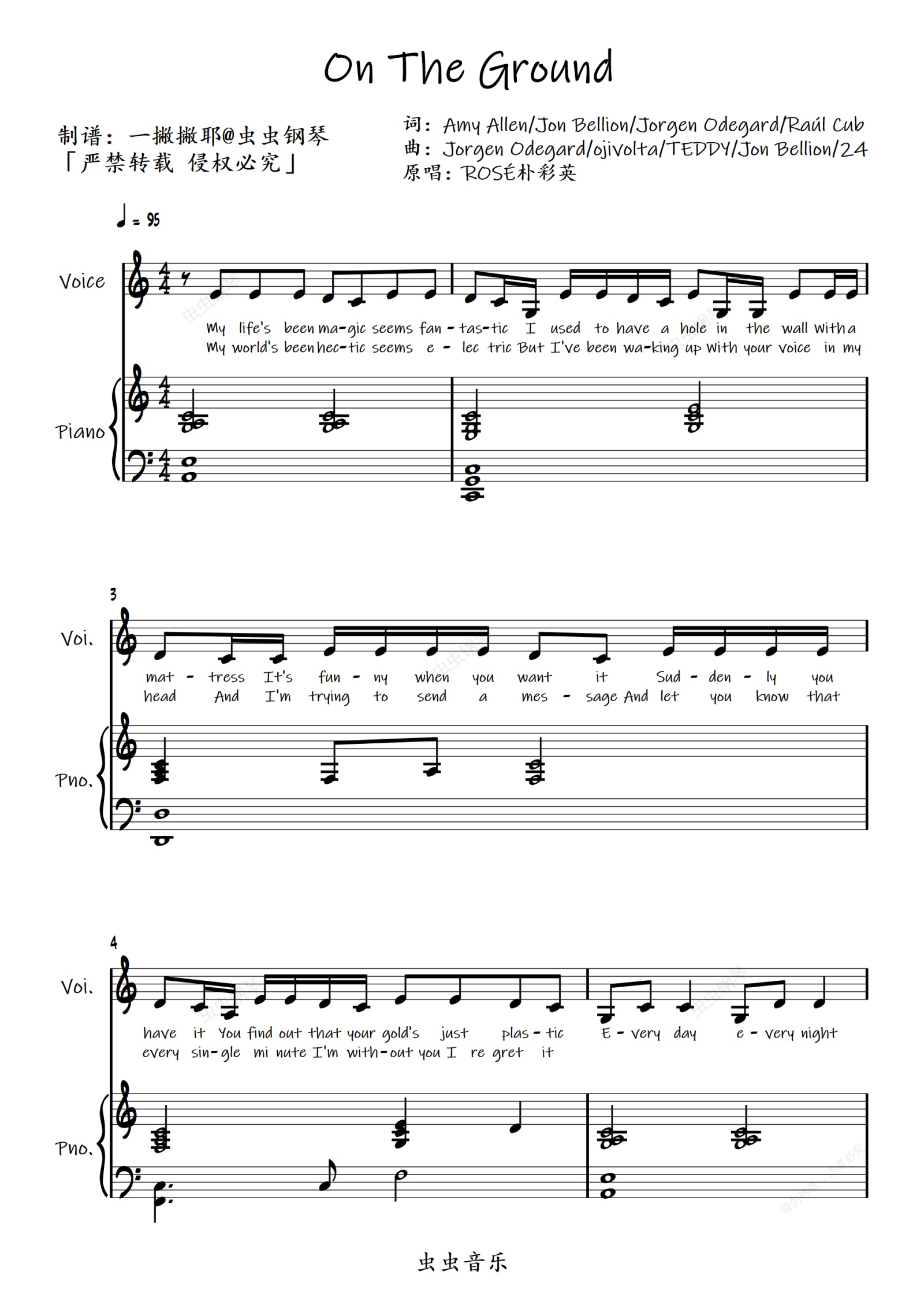 钢琴谱:C调弹唱《On The Ground》朴彩英 ROSÉ「一撇撇耶」