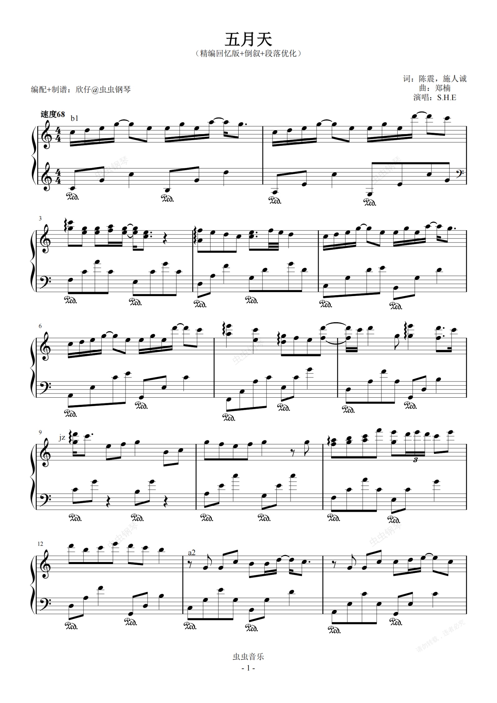 钢琴谱:S.H.E-C《五月天》(精编回忆版+倒叙+段落优化)