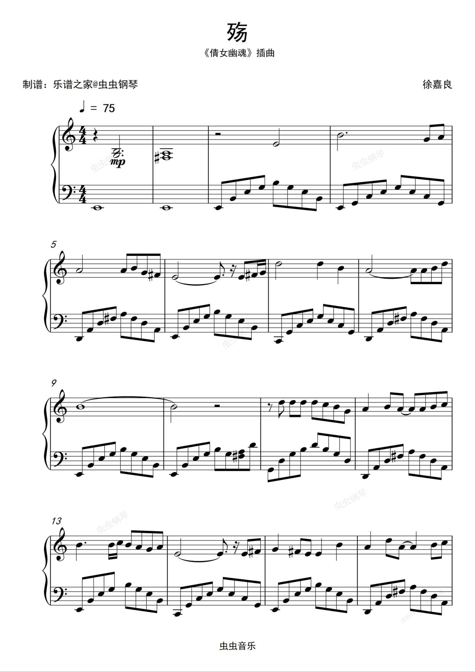 钢琴谱:殇  又名《光影》《倩女幽魂》插曲 独奏钢琴谱 高清乐谱