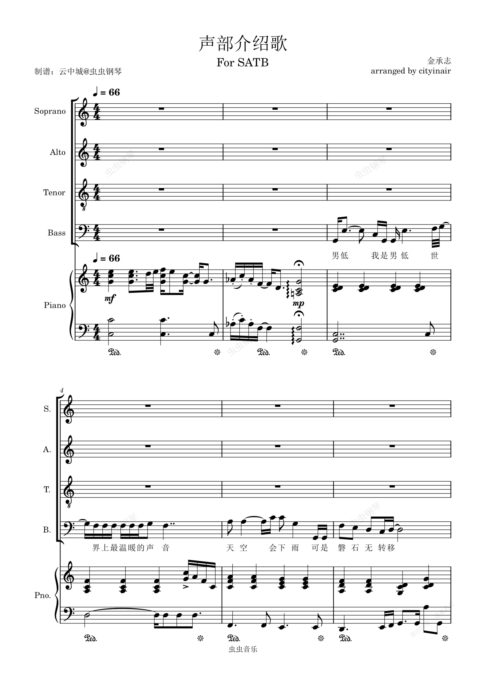 钢琴谱:【SATB合唱总谱】声部介绍歌
