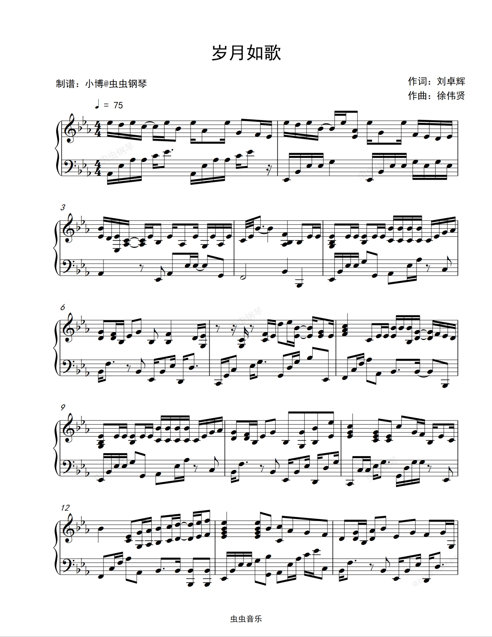 钢琴谱:岁月如歌-冲上云霄主题曲-陈奕迅