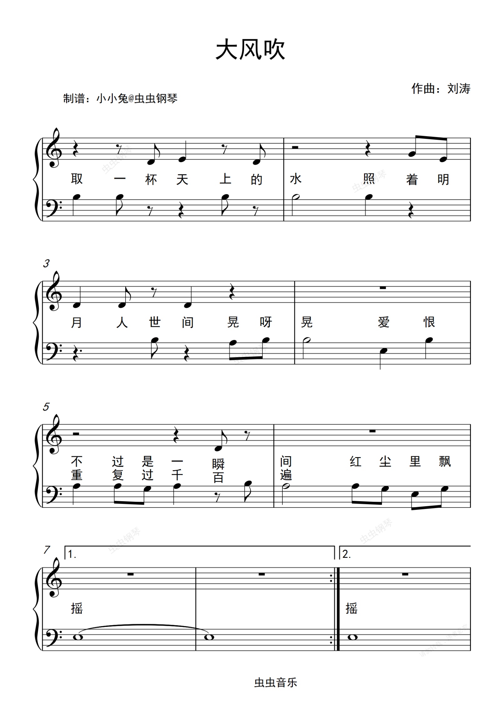 钢琴谱:大风吹 小汤 片段 C调