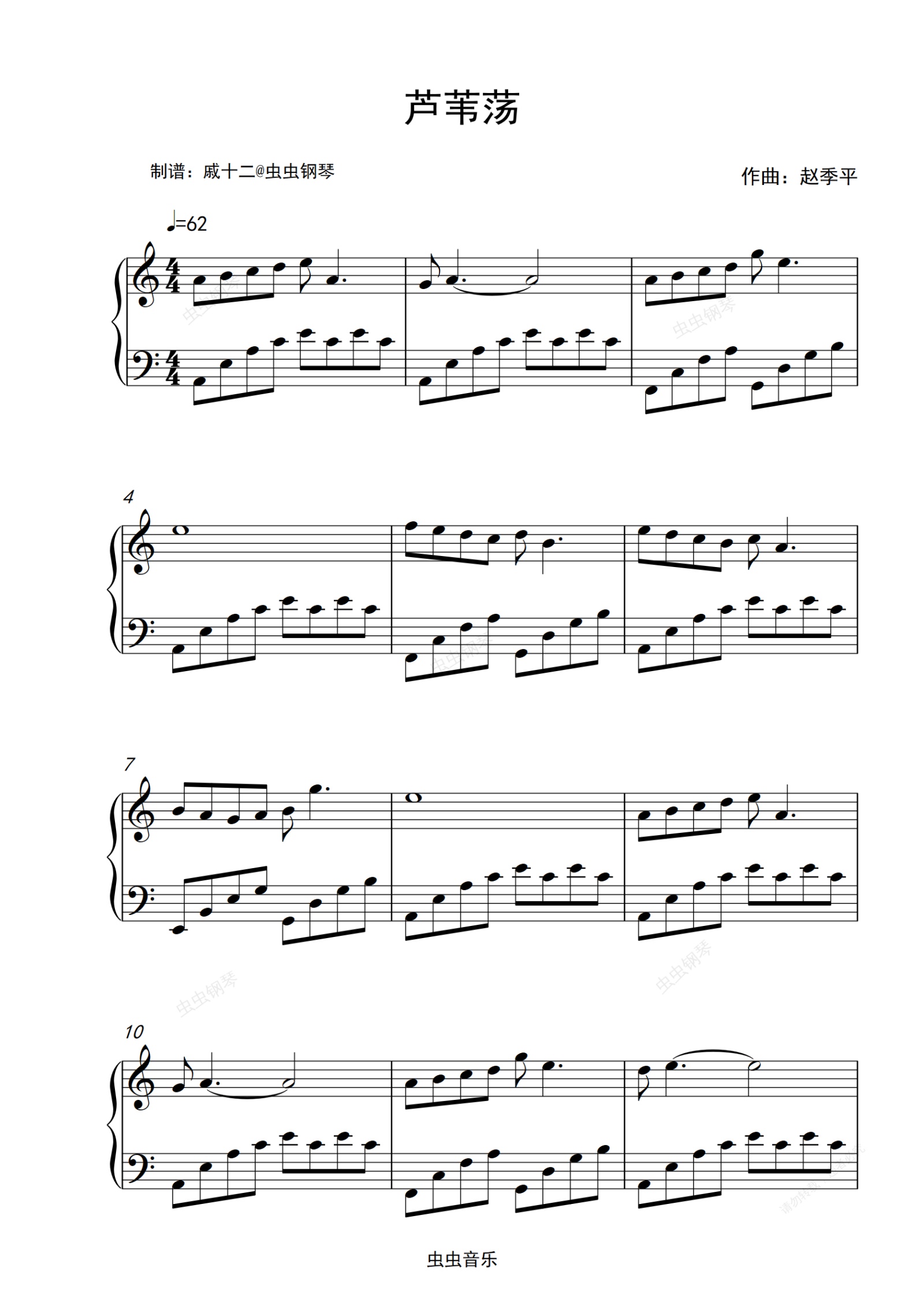 钢琴谱:芦苇荡《大话西游》插曲-C调简单版