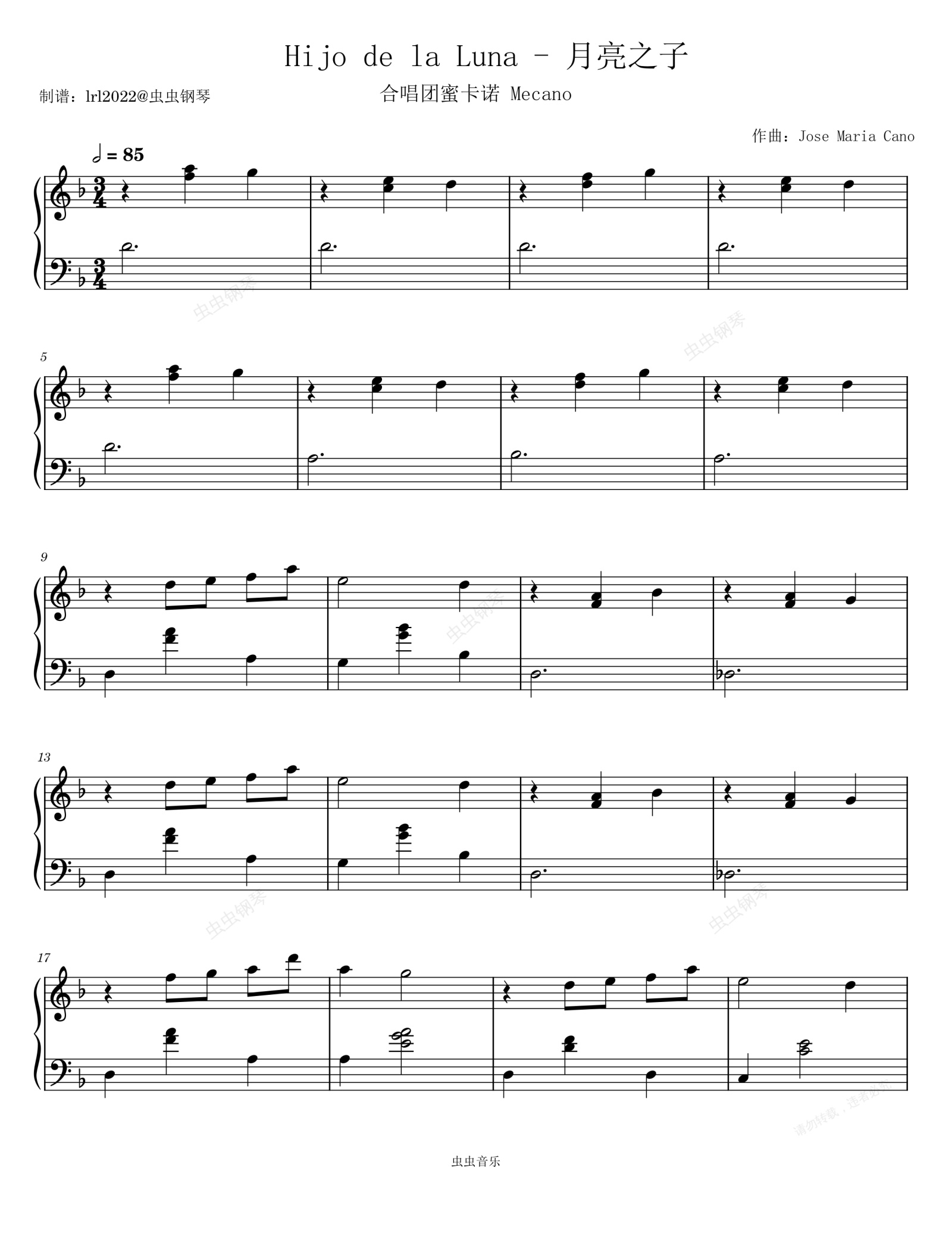 钢琴谱:《月亮之子》- 合唱团蜜卡诺 - Hijo de la Luna - 钢琴独奏 - Mecano