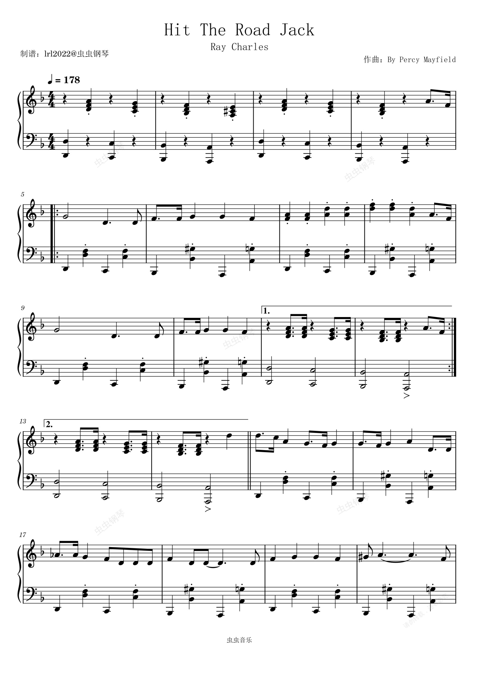 钢琴谱:Hit The Road Jack - Ray Charles -钢琴独奏