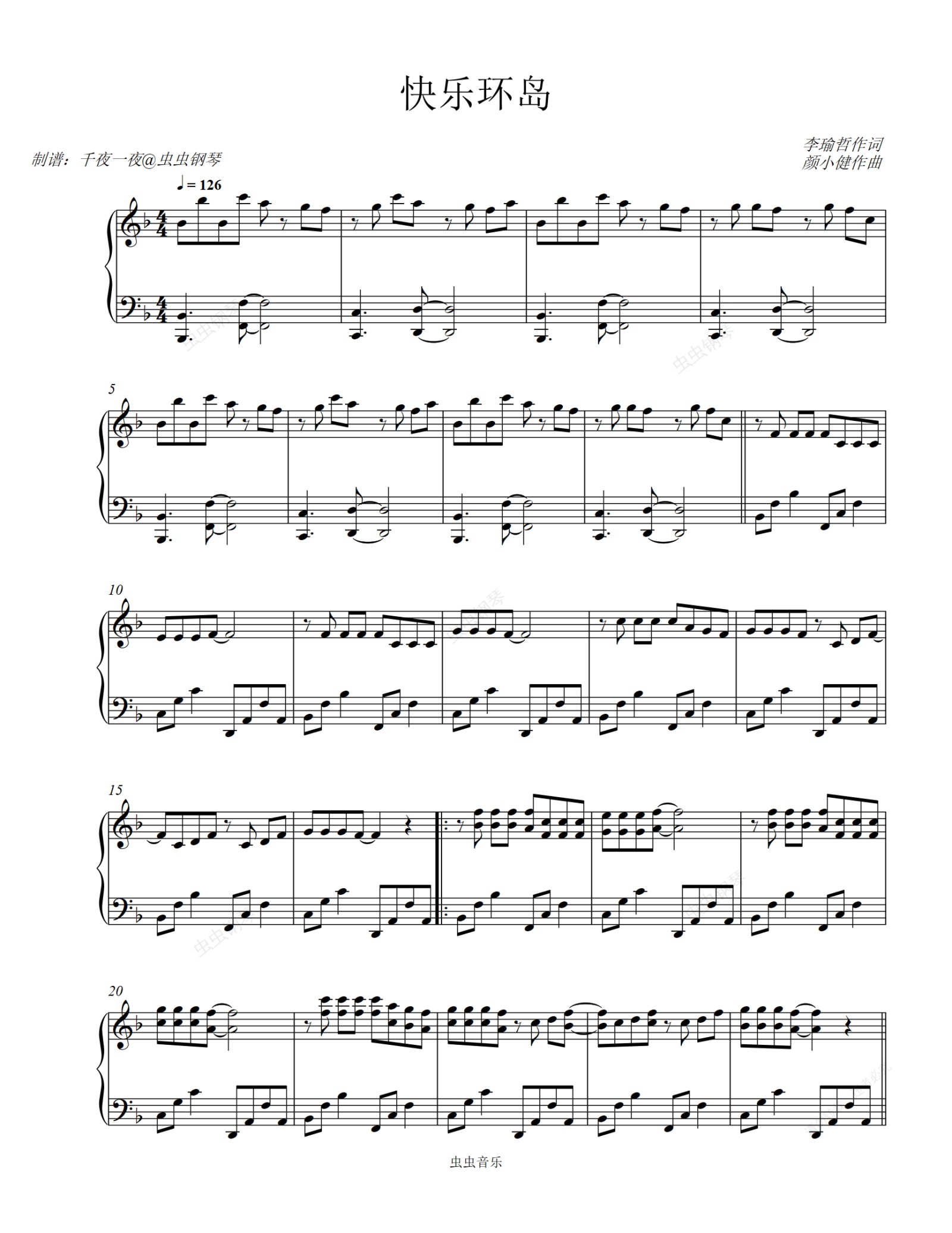 钢琴谱:快乐环岛-TFBOYS偶像手记主题曲