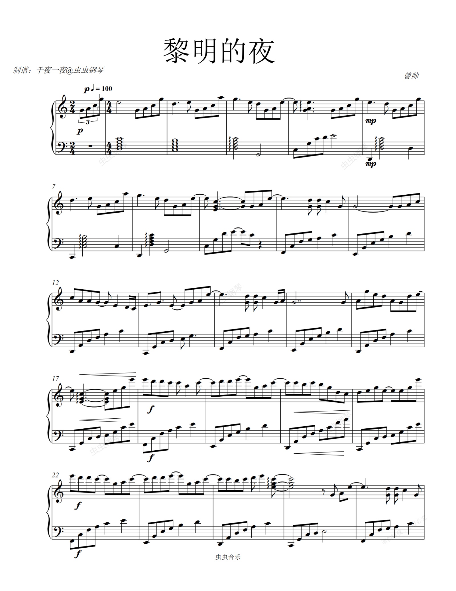 钢琴谱:黎明的夜-曾帅
