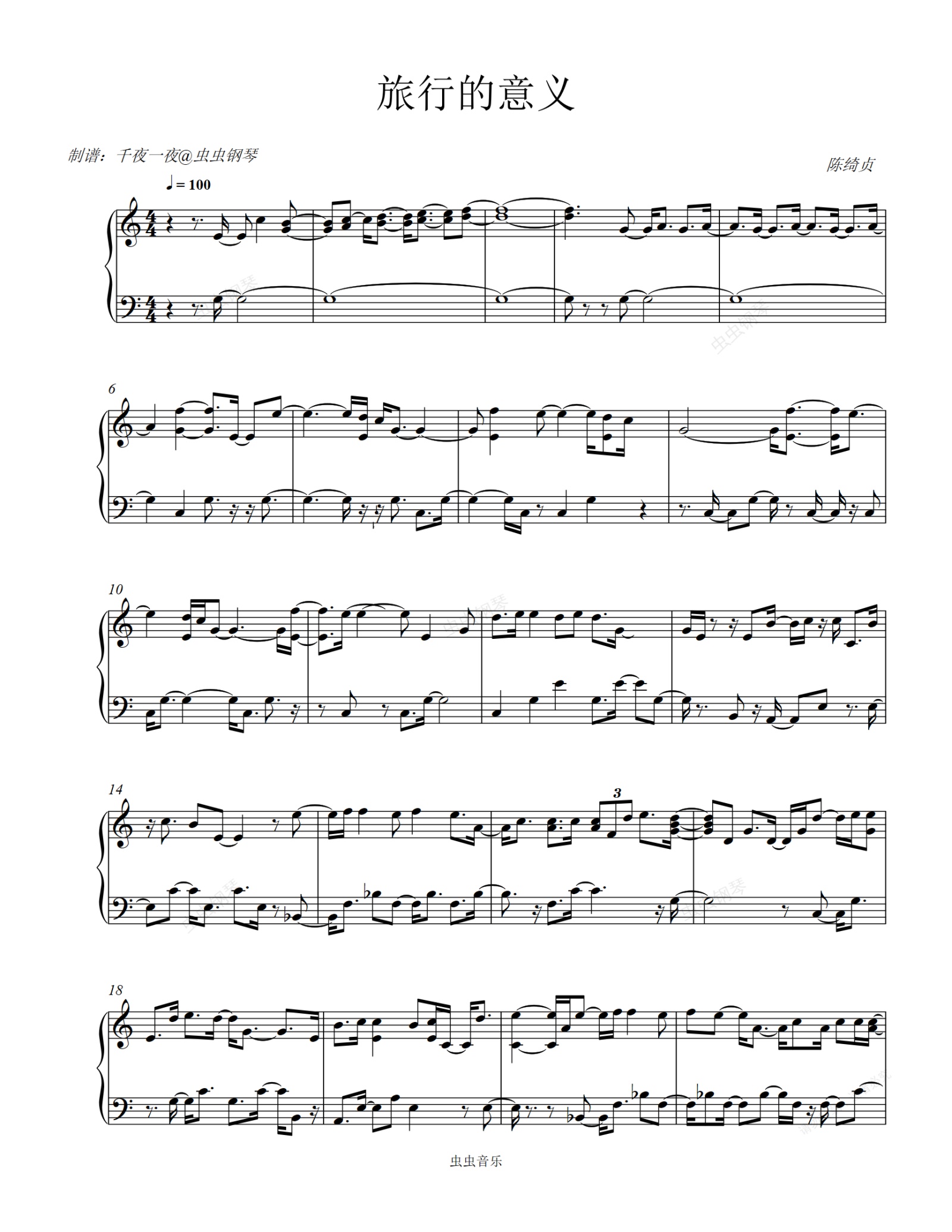 钢琴谱:你离开我就是《旅行的意义》——陈绮贞