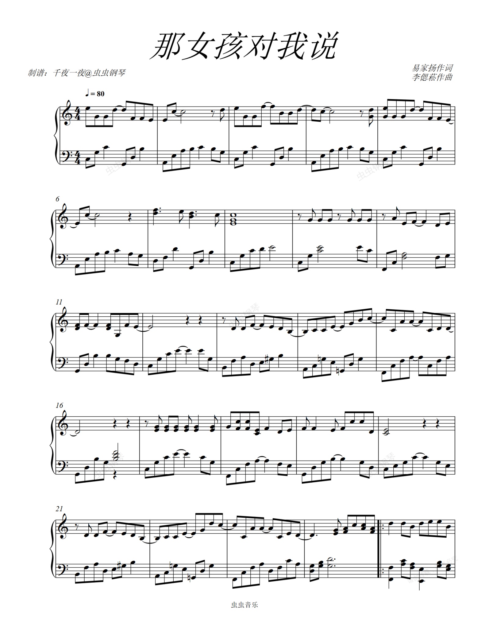 钢琴谱:催泪歌曲《那女孩对我说》钢琴演奏,那女孩对我说,说我保护她的梦……