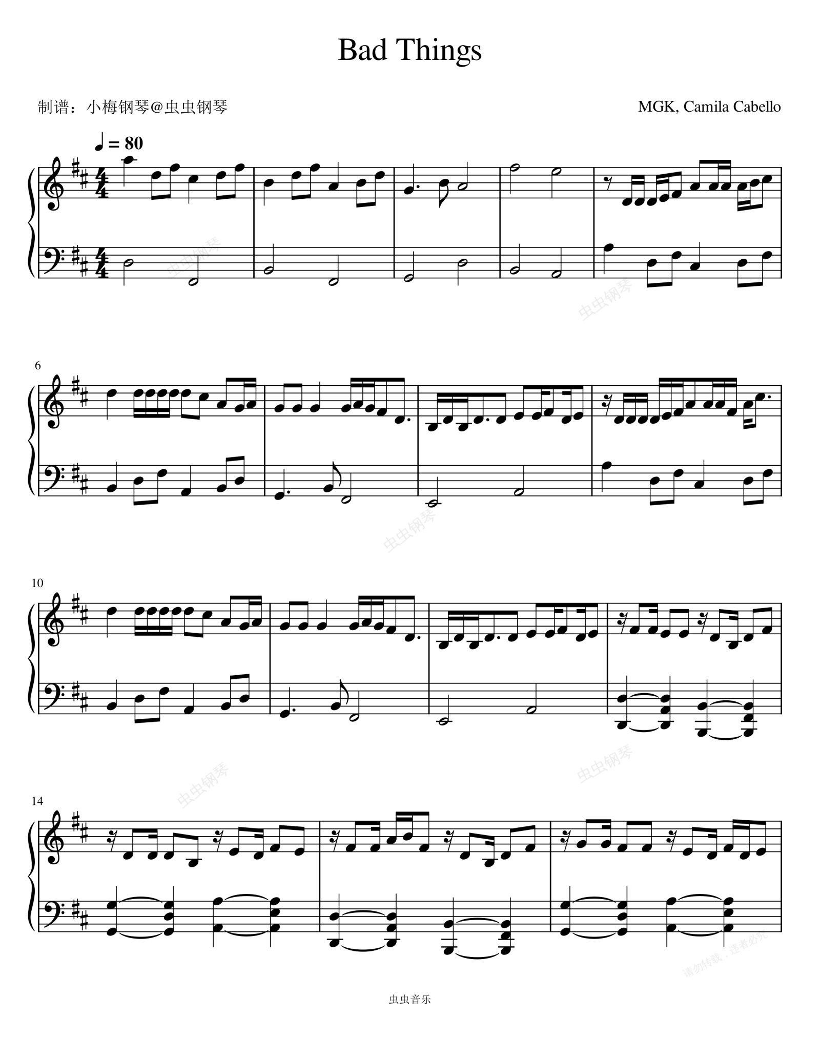 钢琴谱:Bad Things - Machine Gun Kelly (机关枪凯利)/Camila Cabello (卡米拉·卡贝洛)