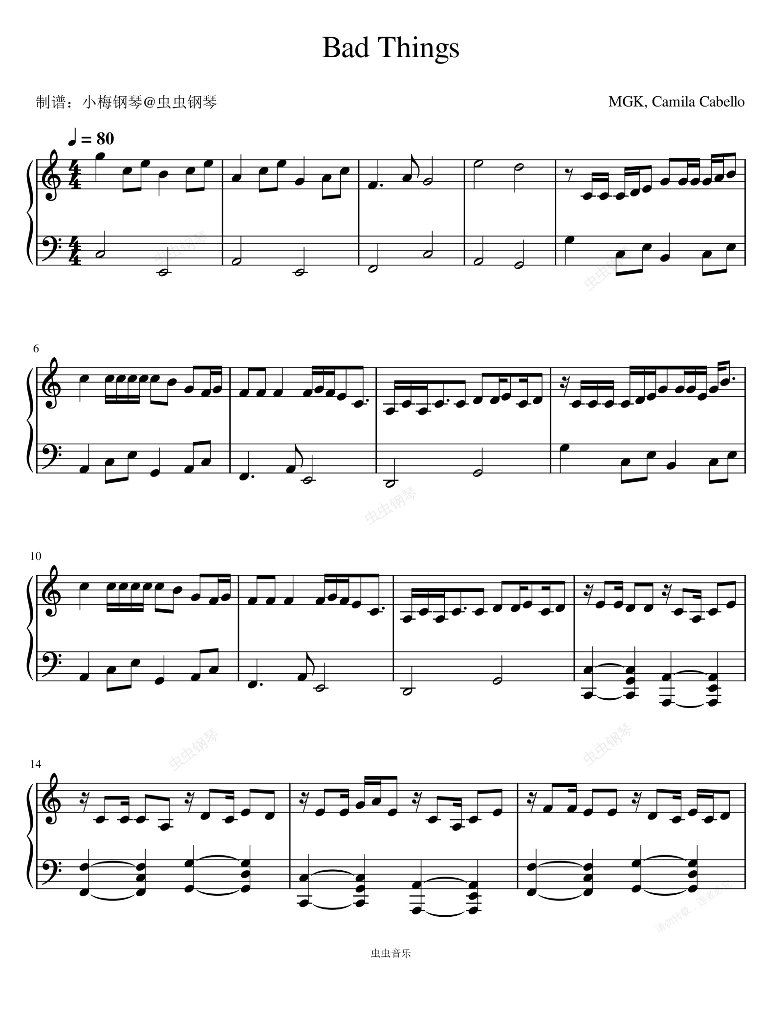 钢琴谱:Bad Things - Machine Gun Kelly (机关枪凯利)/Camila Cabello (卡米拉·卡贝洛)