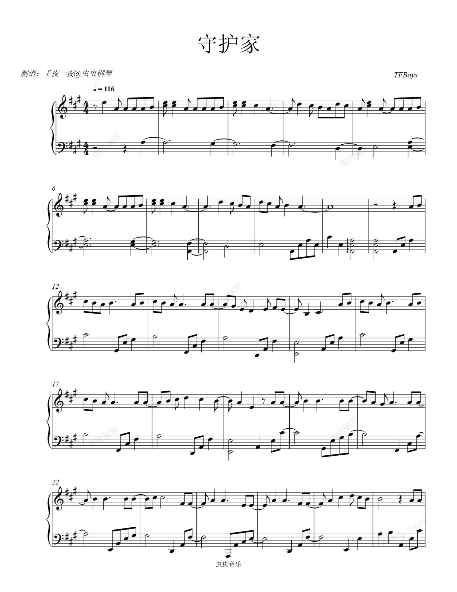 钢琴谱:守护家-舒肤佳广告曲-TFBoys