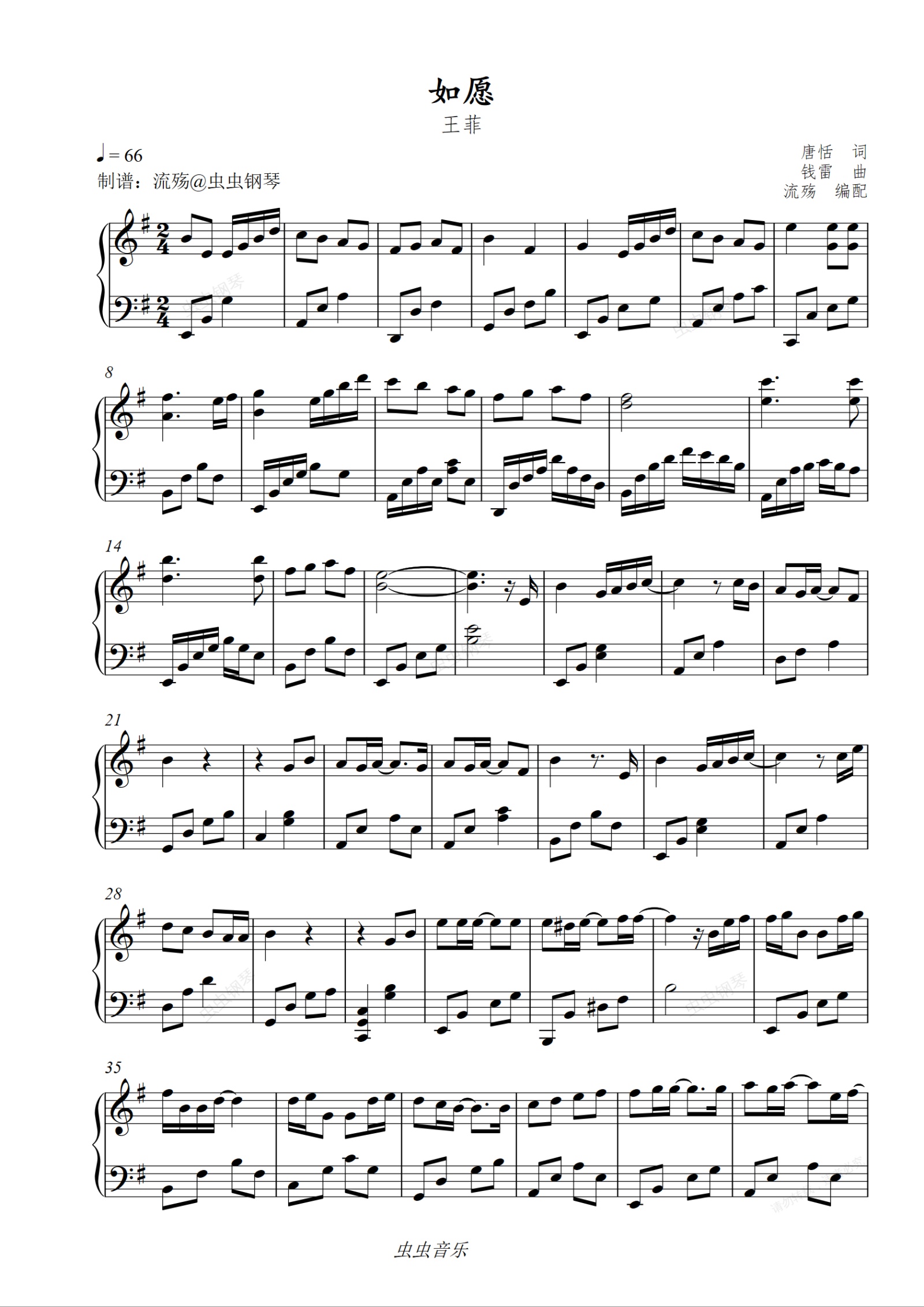 钢琴谱:如愿(G调版)