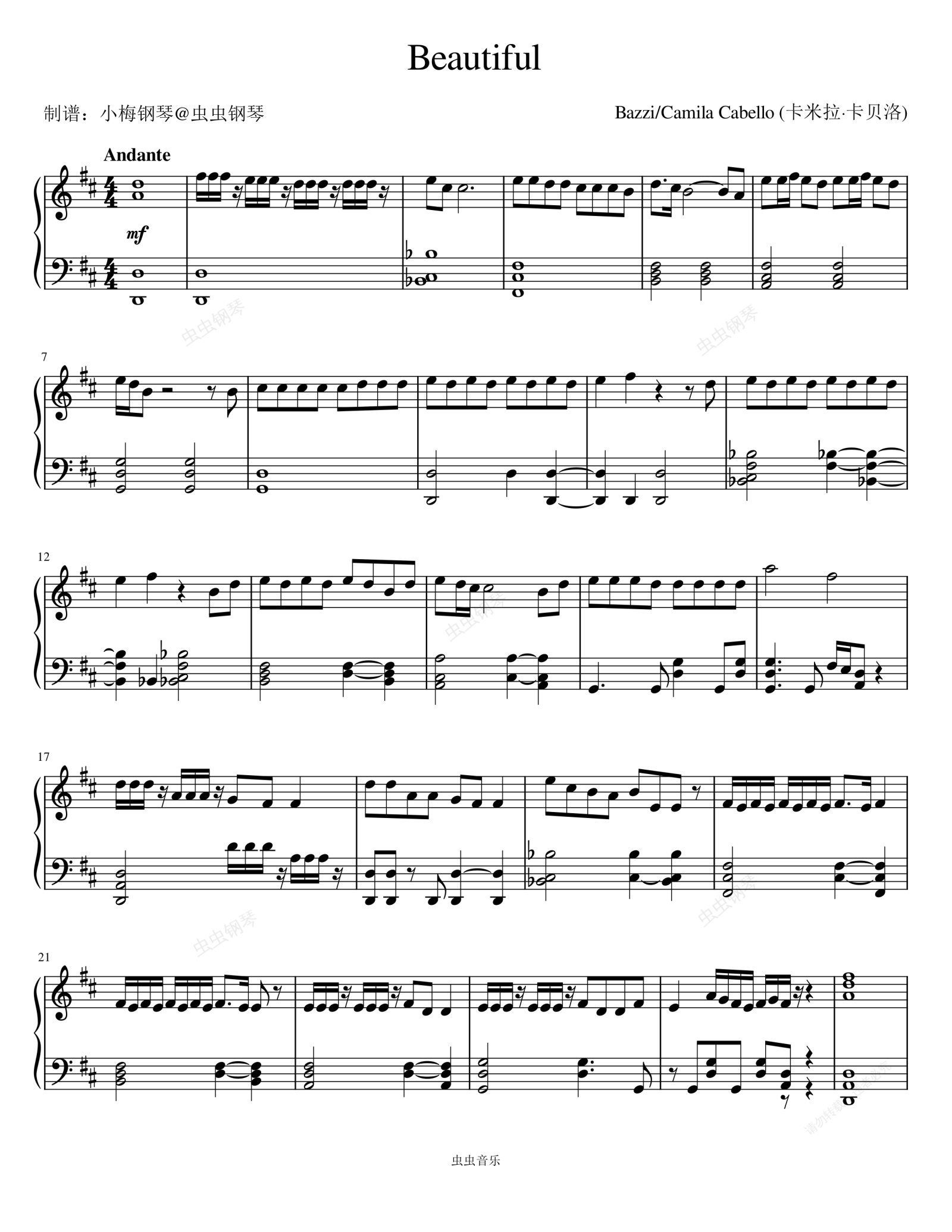 钢琴谱:Beautiful - Bazzi/Camila Cabello (卡米拉·卡贝洛)
