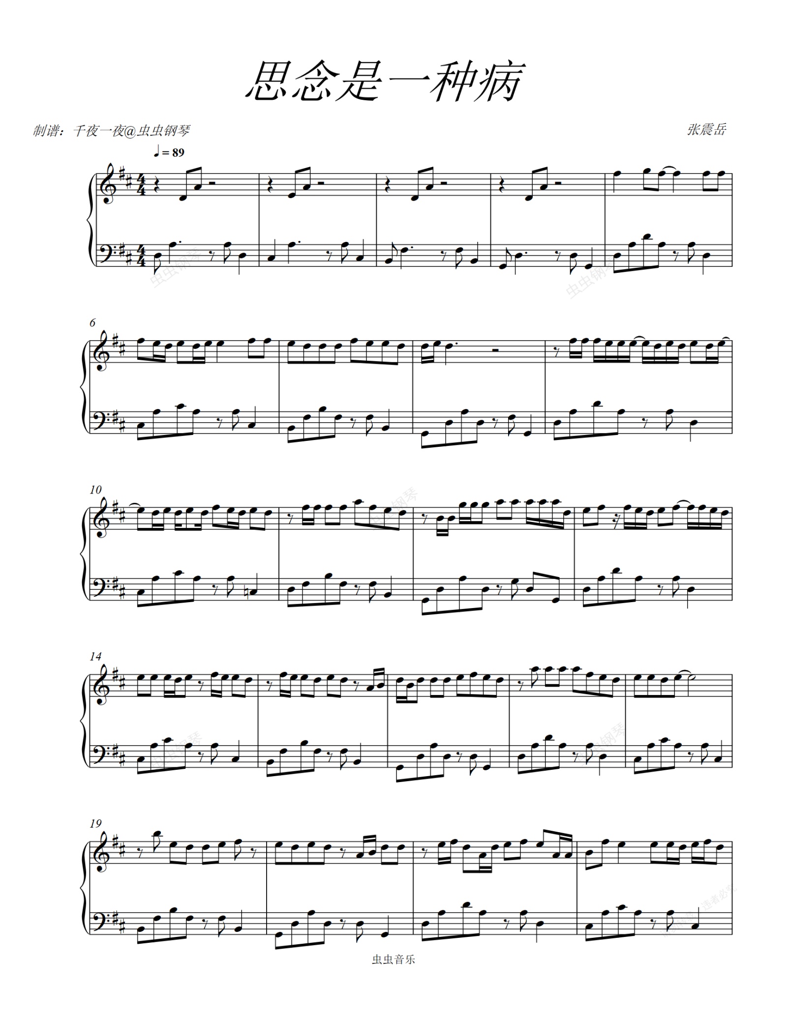 钢琴谱:张震岳|思念是一种病|钢琴翻弹|