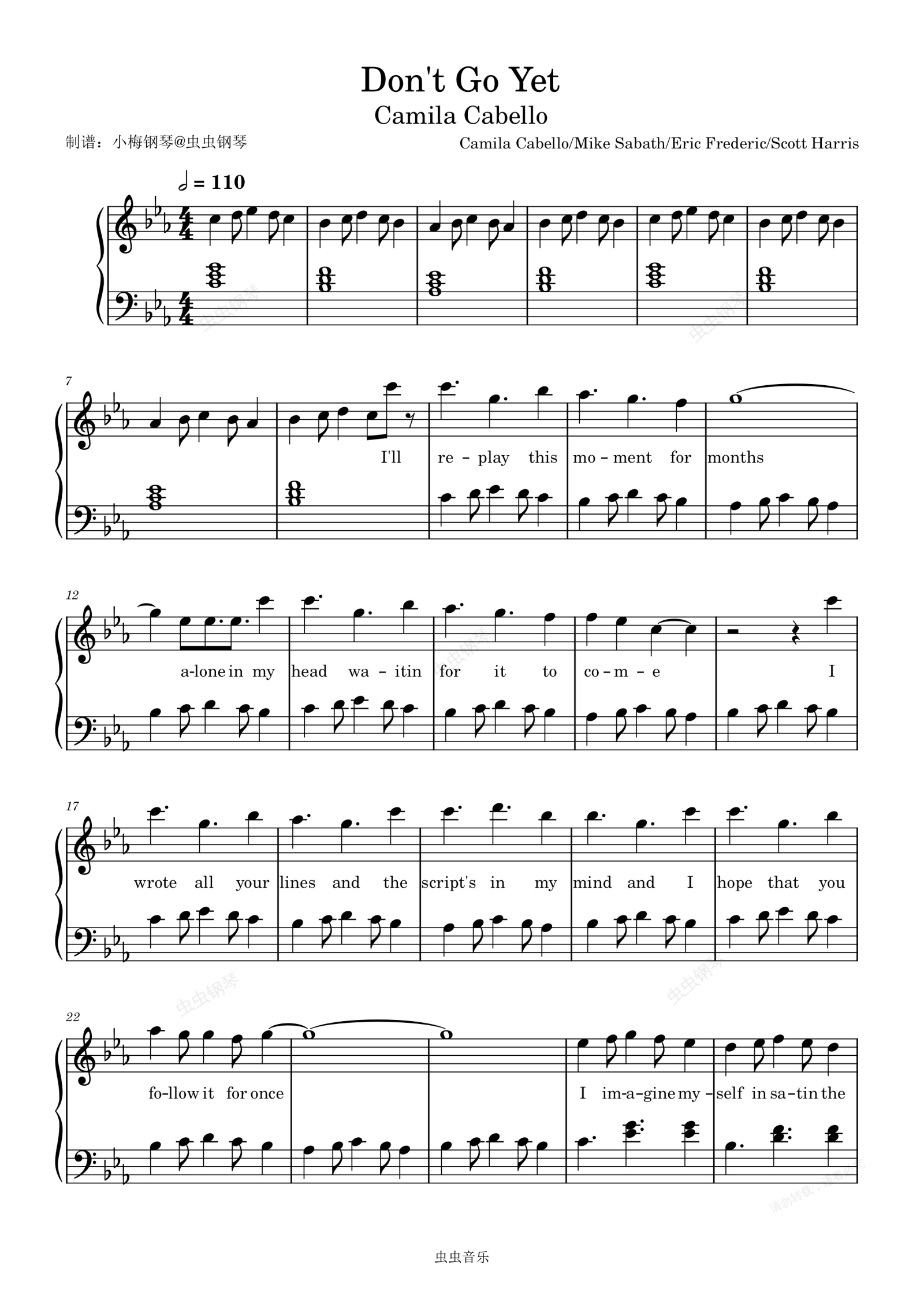 钢琴谱:Don't Go Yet - Camila Cabello (卡蜜拉·卡贝罗)