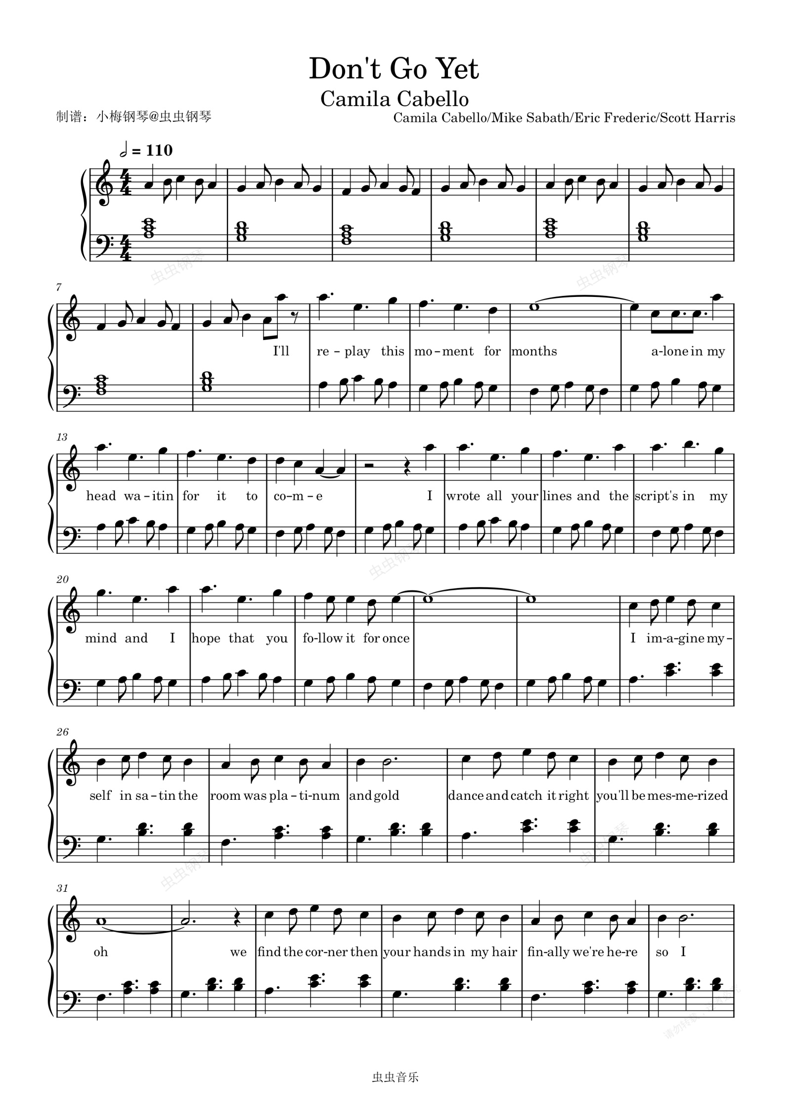 钢琴谱:Don't Go Yet - Camila Cabello (卡蜜拉·卡贝罗)