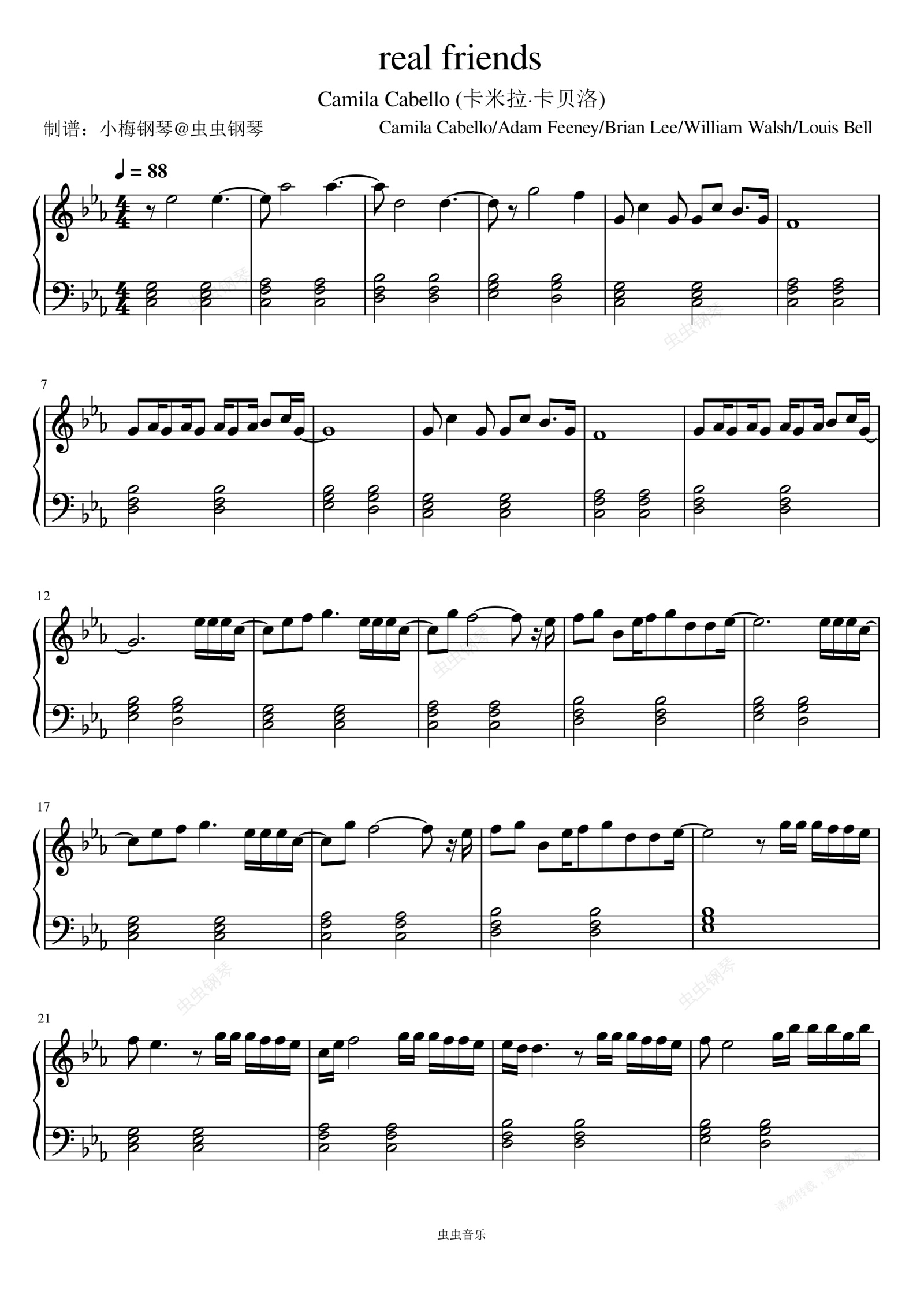 钢琴谱:Real Friends - Camila Cabello (卡米拉·卡贝洛)
