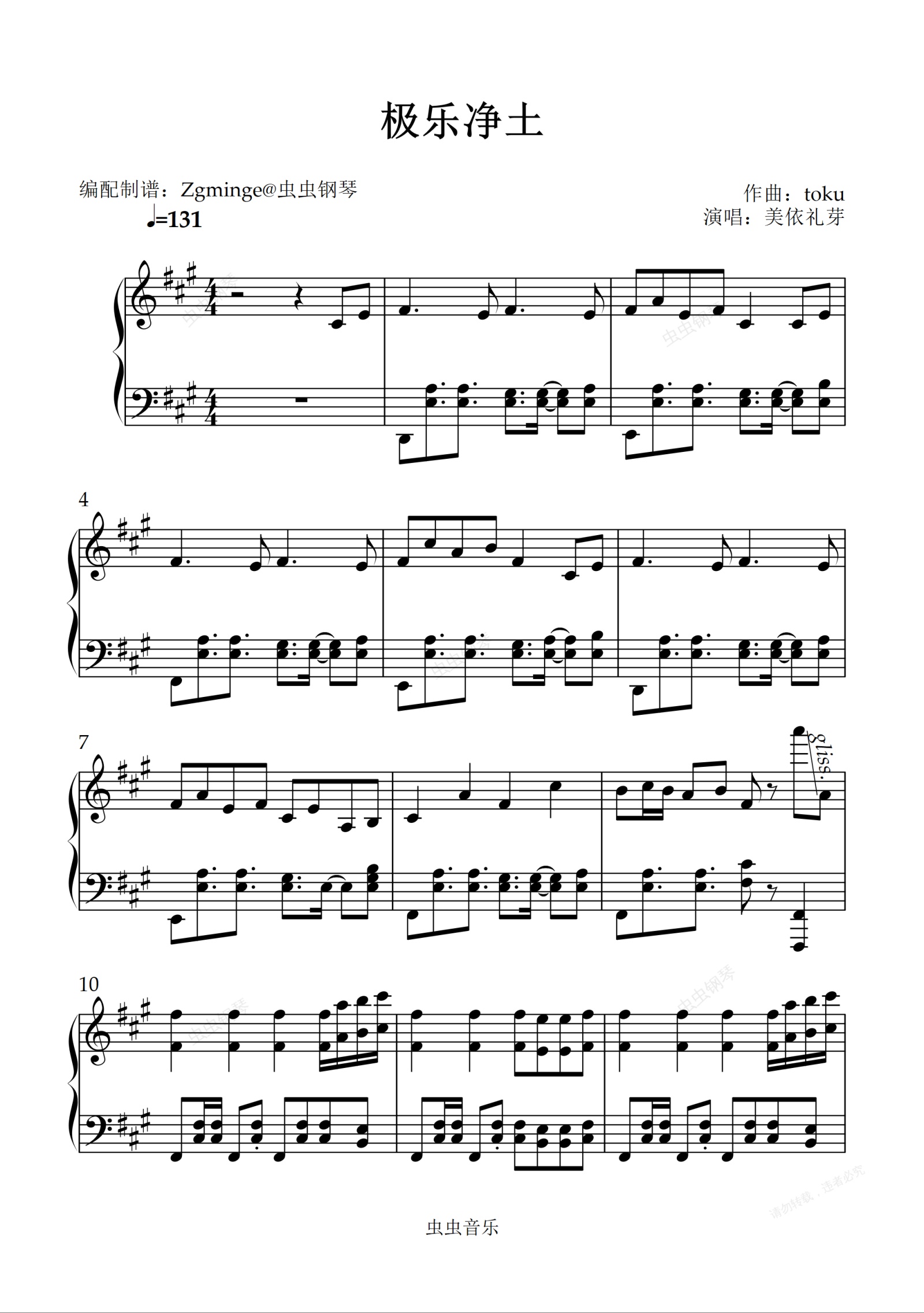 钢琴谱:极乐净土 附带原版伴奏还原(非完整版)