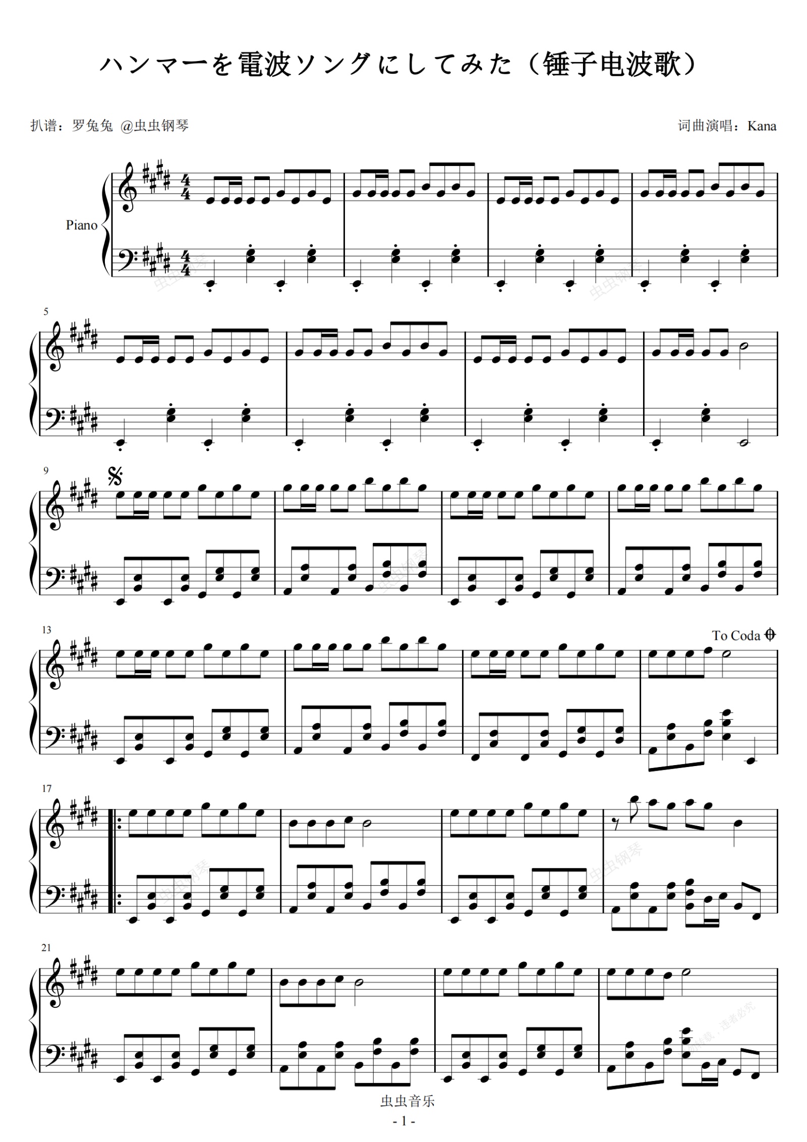 钢琴谱:ハンマーを電波ソングにしてみた(锤子电波歌)