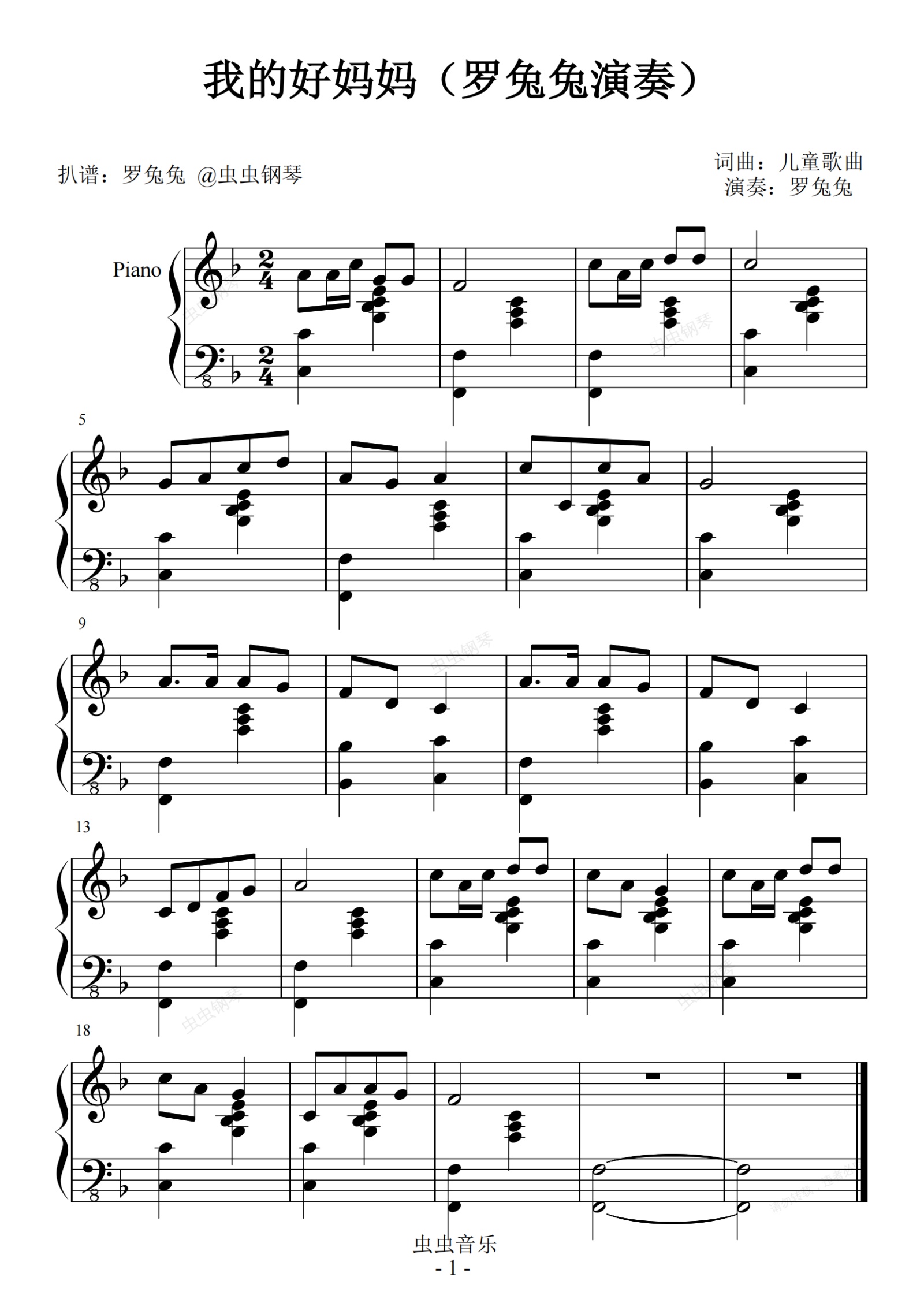 钢琴谱:我的好妈妈(罗兔兔演奏)