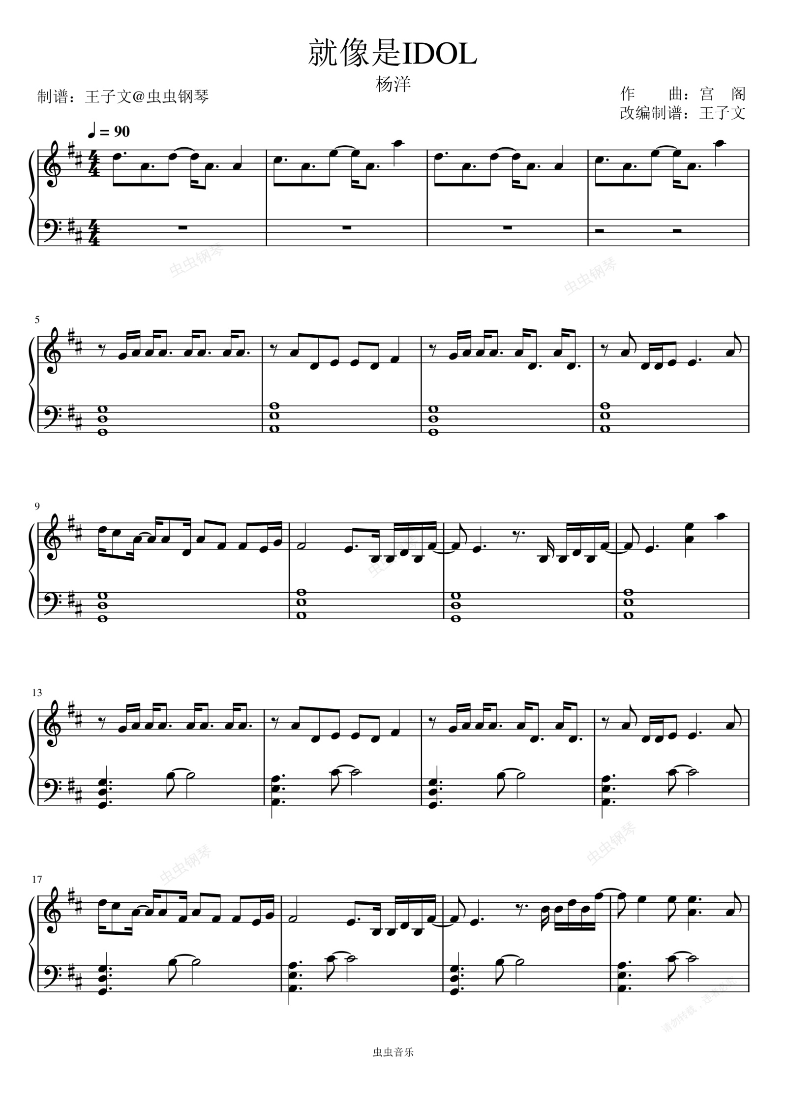 钢琴谱:就像是IDOL-杨洋