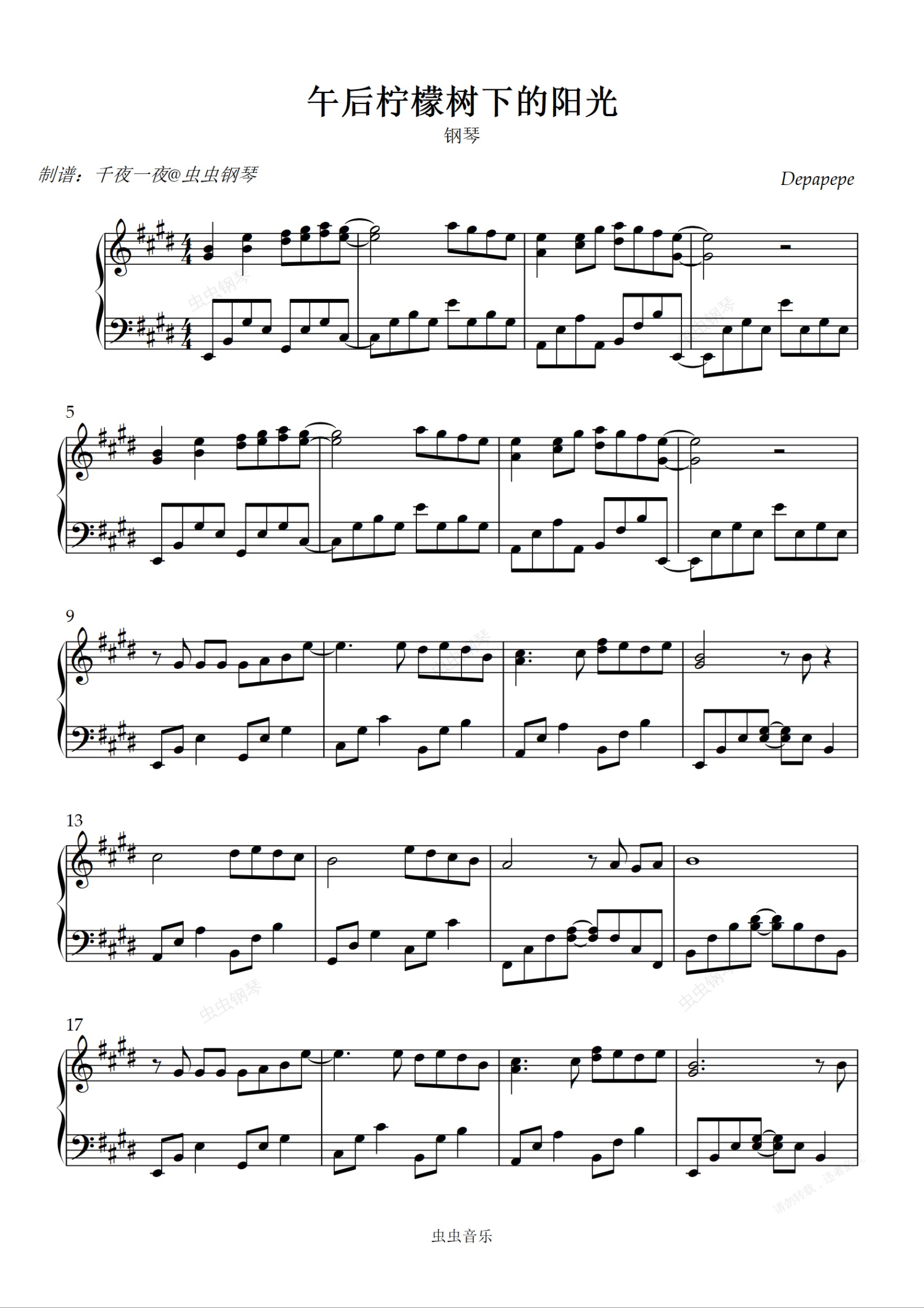 钢琴谱:钢琴版きっとまたいつか(午后柠檬树下的阳光)DEPAPEPE