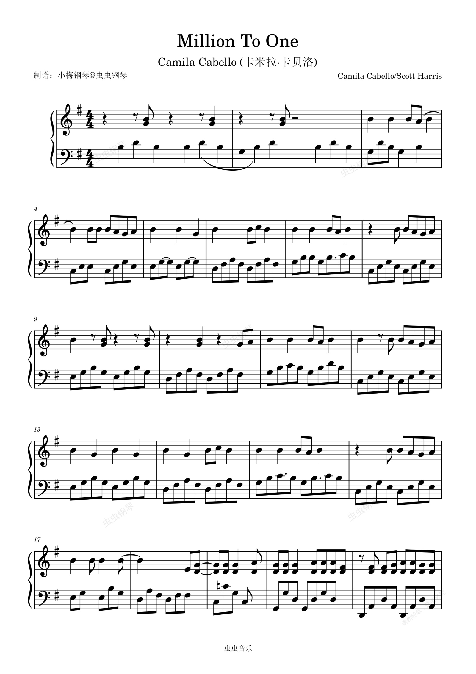 钢琴谱:Million To One - Camila Cabello (卡米拉·卡贝洛)