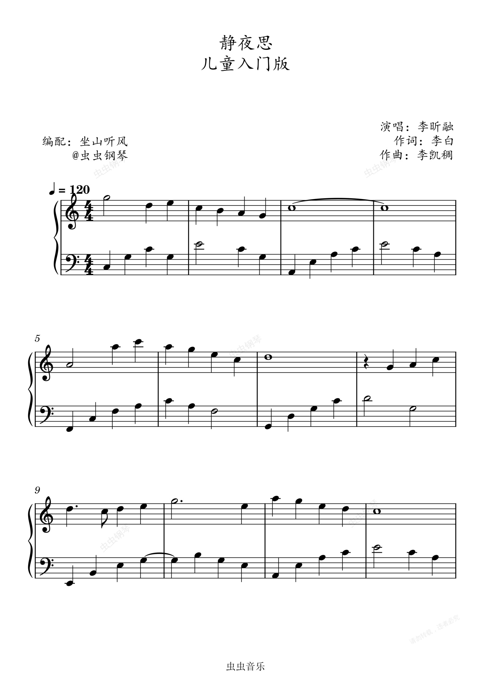 钢琴谱:静夜思——儿童入门版